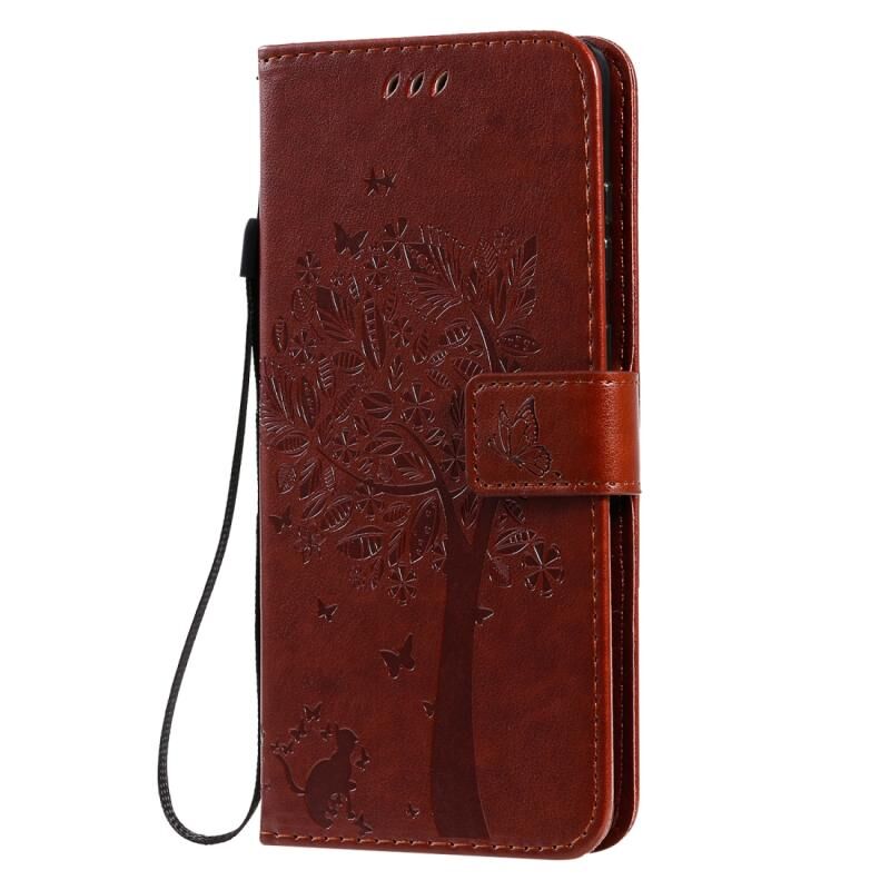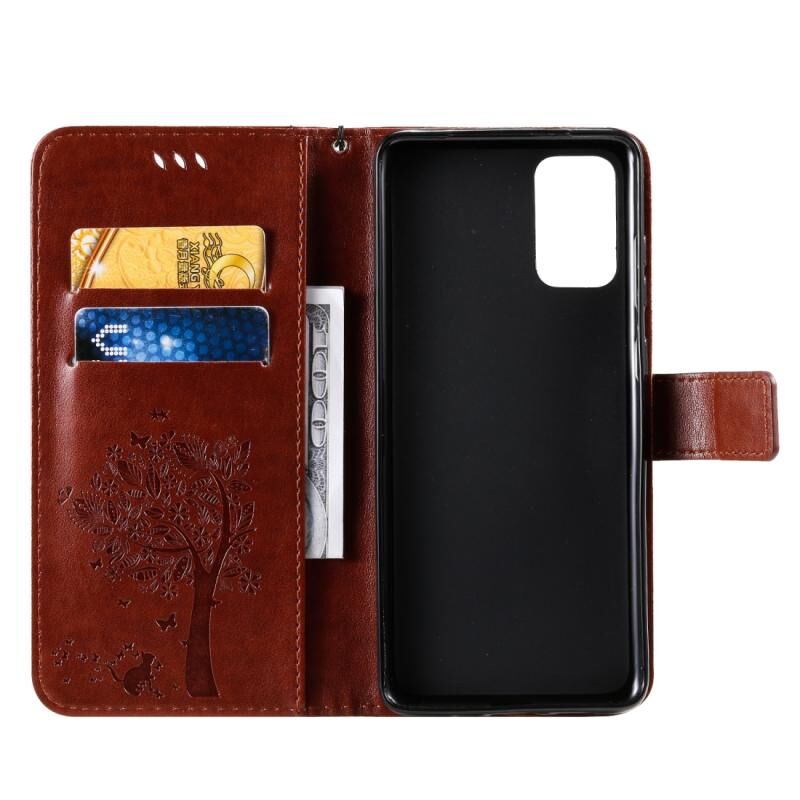 Θήκη για Galaxy S20+ με σχέδιο Δέντρου & Γάτας, εκτύπωση με πίεση, οριζόντια αναδιπλούμενη από δερματίνη PU με βάση & θήκες καρτών & πορτοφόλι & κορδόνι (Καφέ)