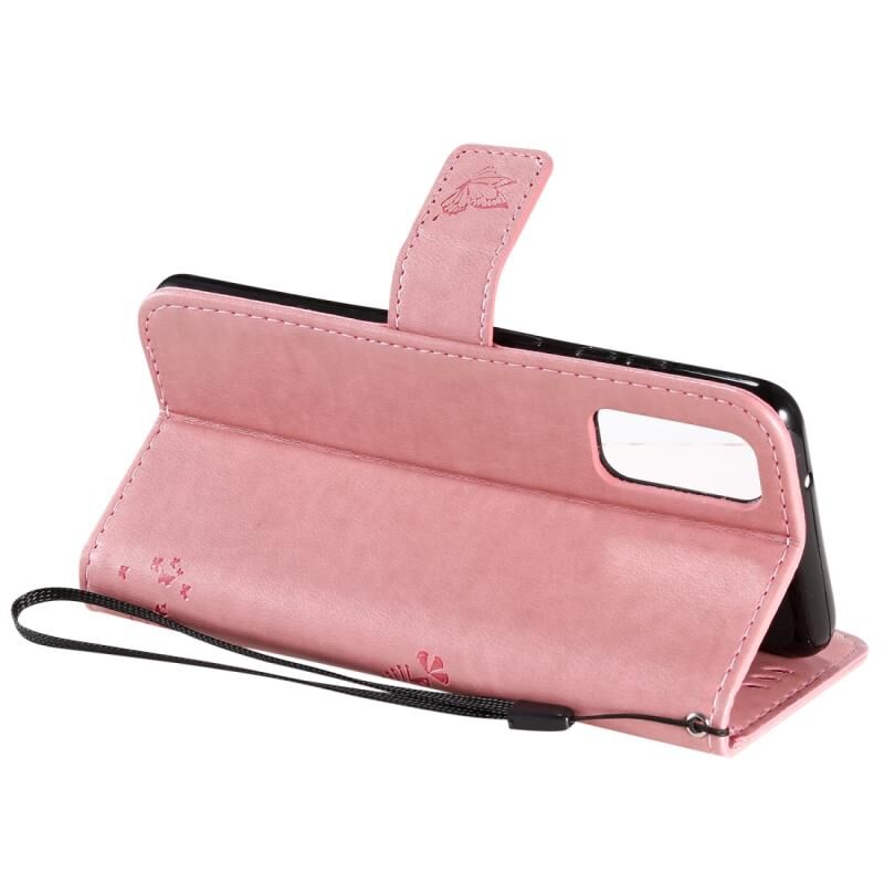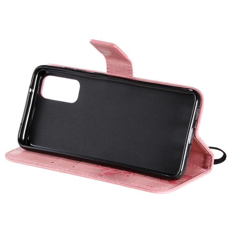 Θήκη για Galaxy S20 με σχέδιο δέντρου & γάτας, με ανάγλυφη εκτύπωση, οριζόντια, από δερματίνη PU με βάση & θήκες για κάρτες & πορτοφόλι & κορδόνι (Ανοιχτό Μωβ)
