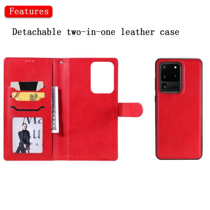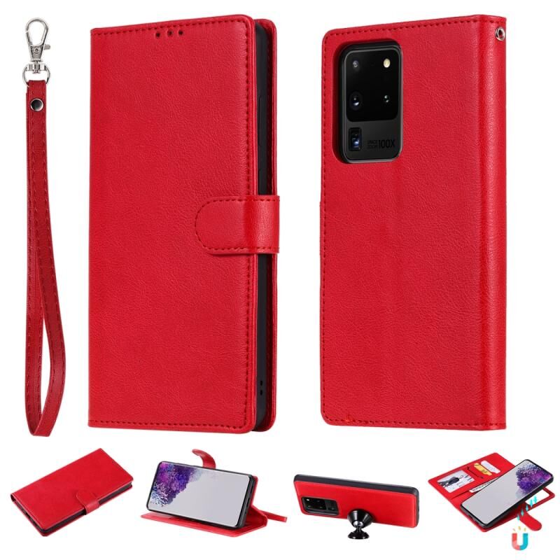 Για Galaxy S20 Ultra 2 σε 1 Αμιγές χρώμα Αποσπώμενη PU δερμάτινη θήκη με υποδοχές για κάρτες & μαγνητική θήκη & κορνίζα φωτογραφιών & πορτοφόλι & λουράκι (κόκκινο)