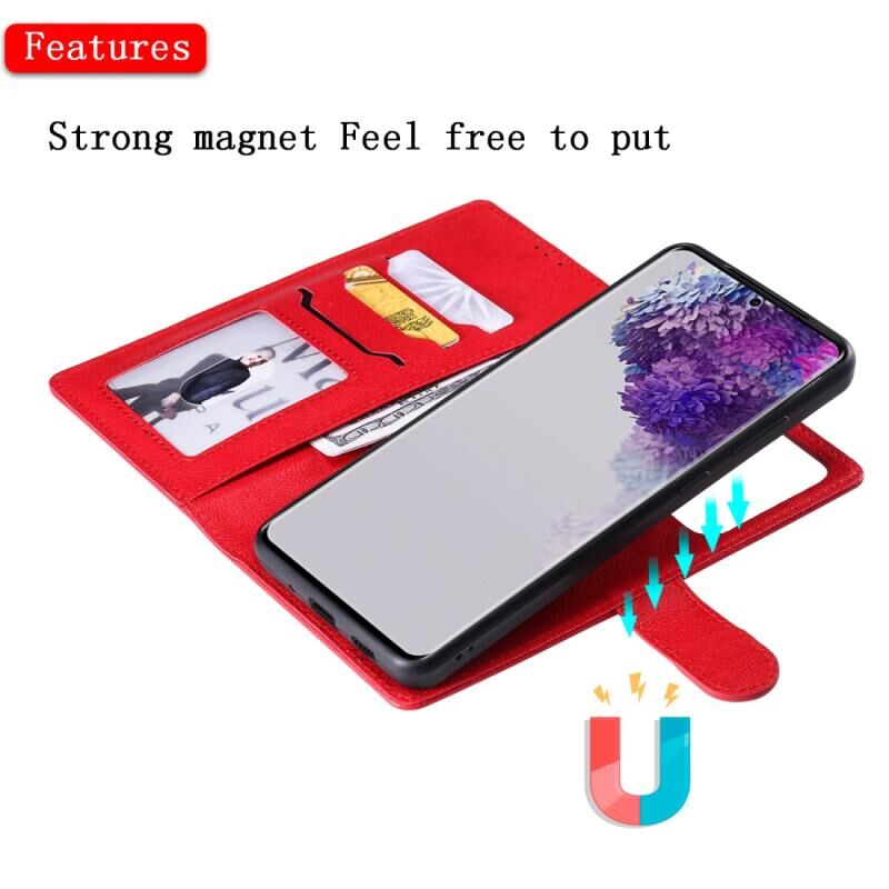 Για Galaxy S20 Ultra 2 σε 1 Αμιγές χρώμα Αποσπώμενη PU δερμάτινη θήκη με υποδοχές για κάρτες & μαγνητική θήκη & κορνίζα φωτογραφιών & πορτοφόλι & λουράκι (Κόκκινο)