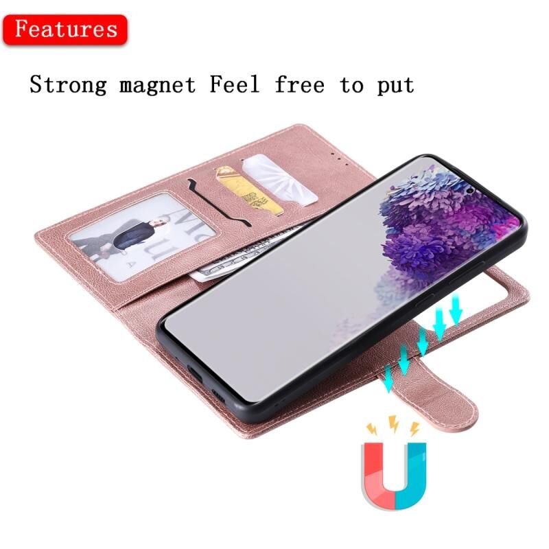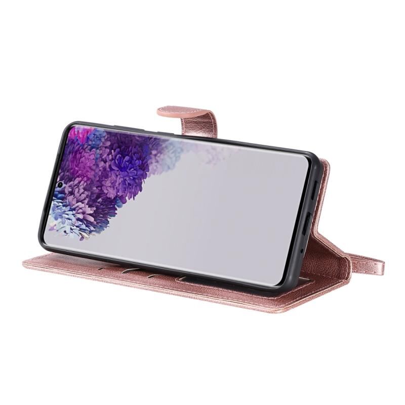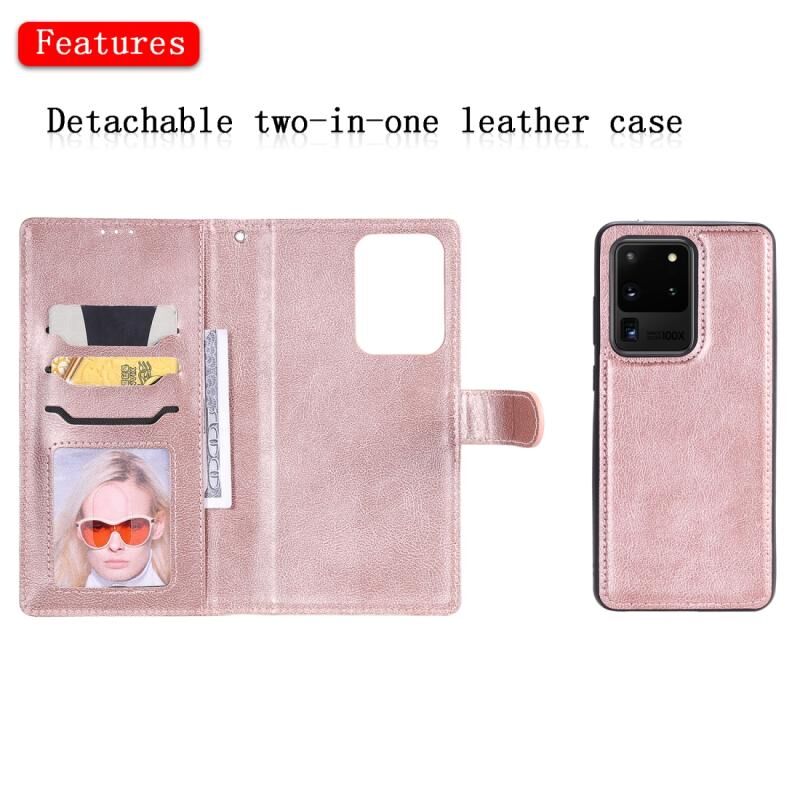Για Galaxy S20 Ultra 2 σε 1 Αμιγές χρώμα Αποσπώμενη PU δερμάτινη θήκη με υποδοχές για κάρτες & μαγνητική θήκη & κορνίζα φωτογραφιών & πορτοφόλι & λουράκι (ροζ χρυσό)
