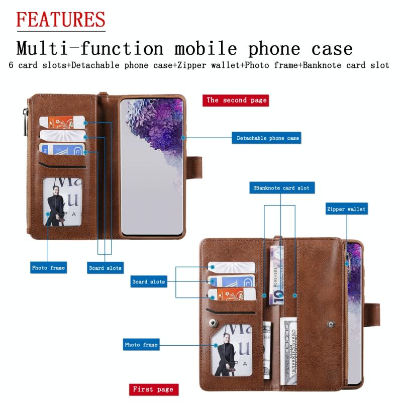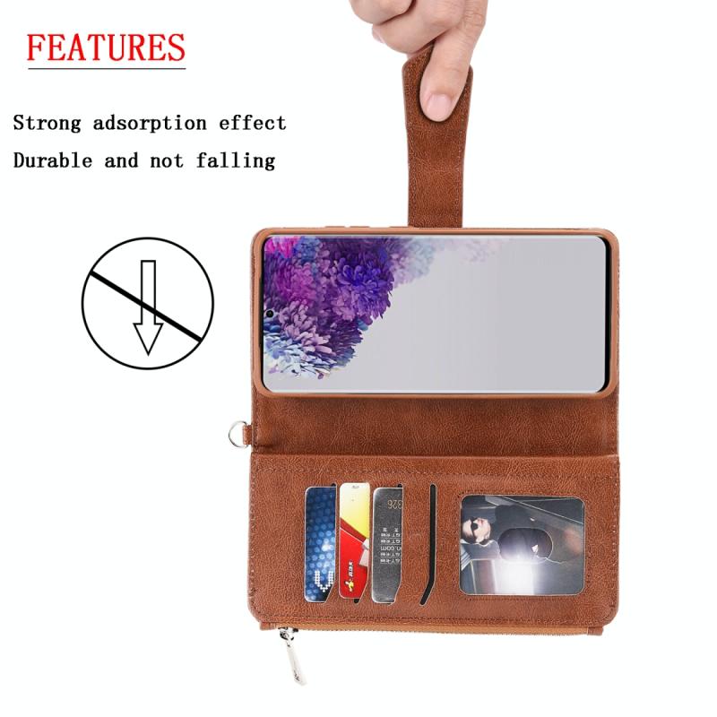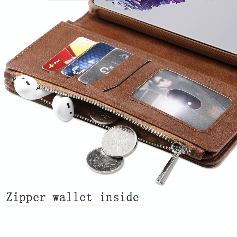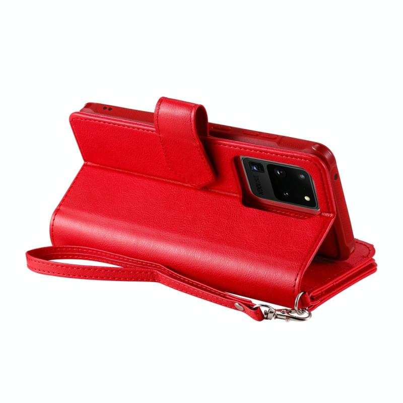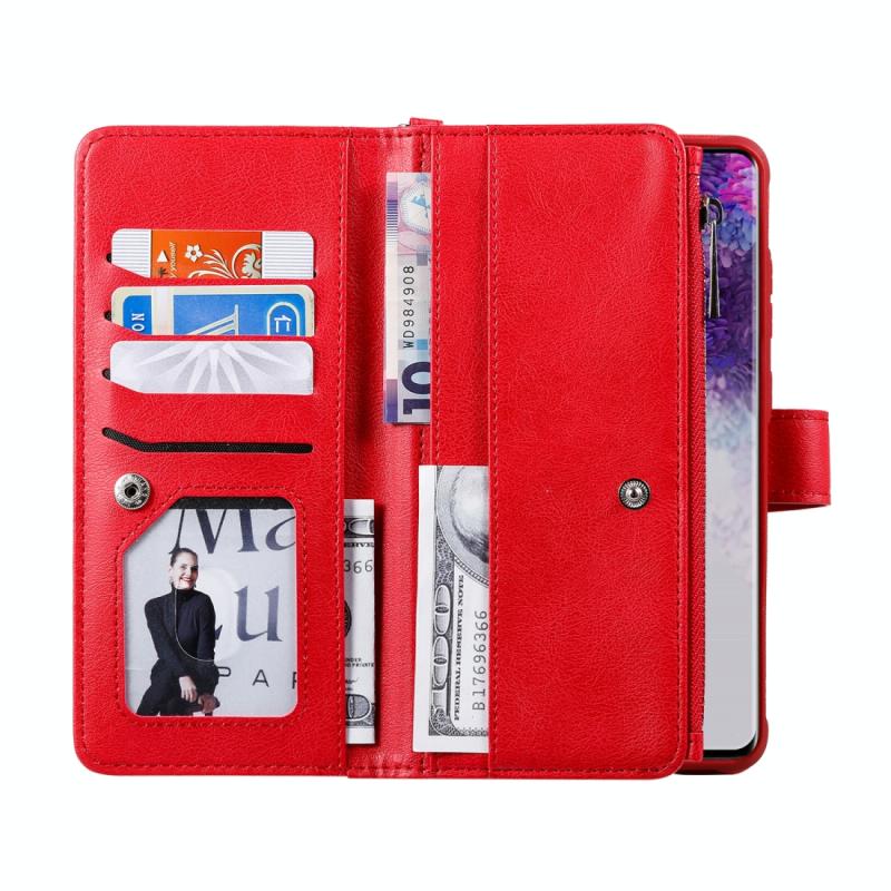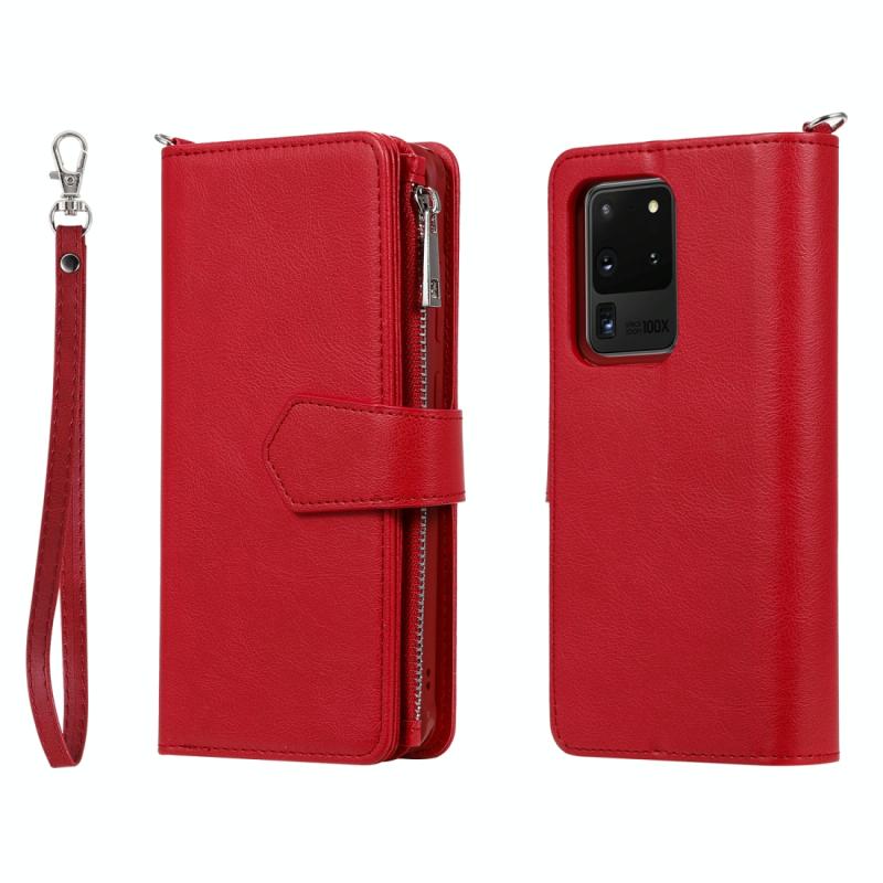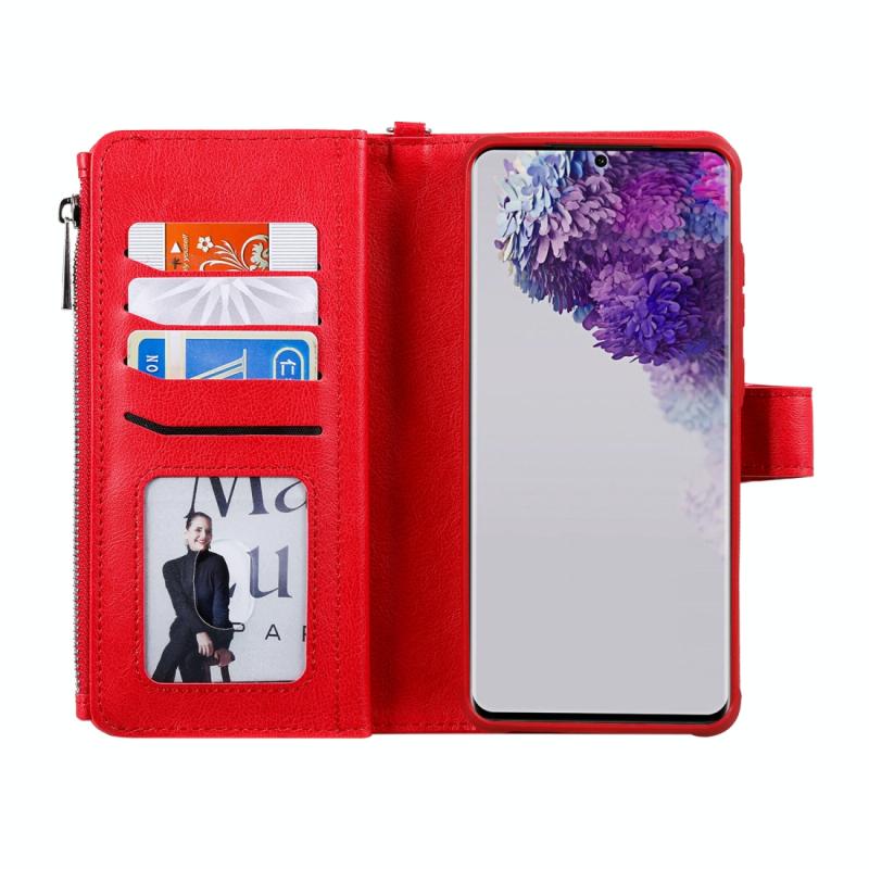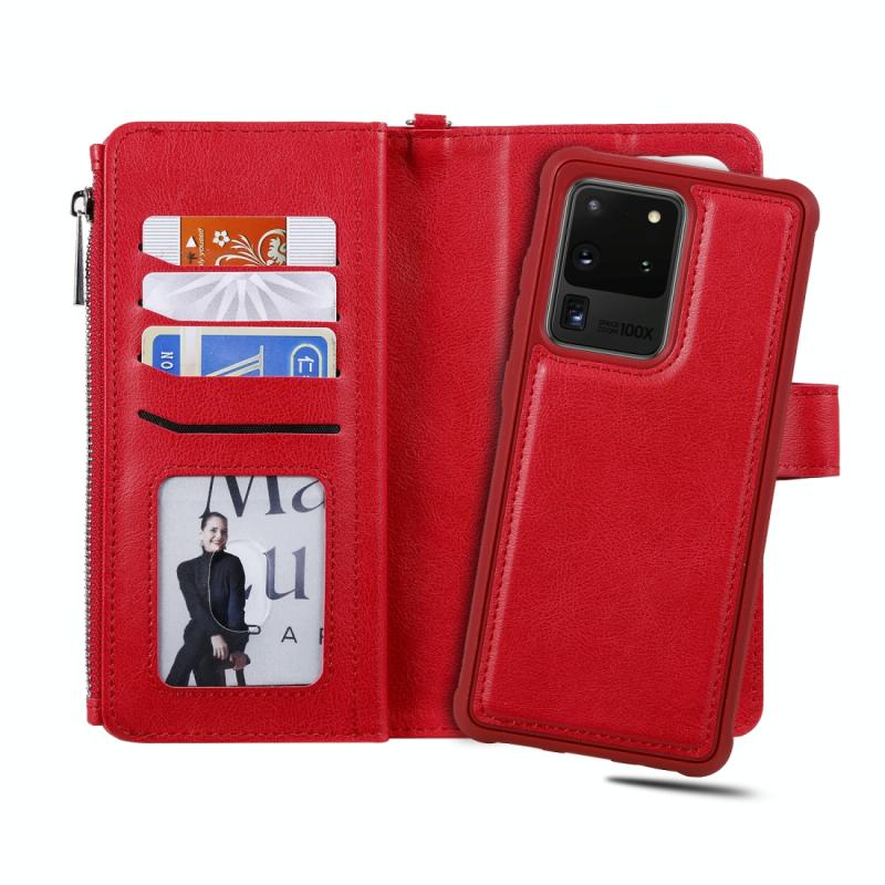Για Galaxy S20 Ultra 2 σε 1 Προστατευτική θήκη με μονόχρωμο φερμουάρ, ανθεκτική σε κρούσεις με υποδοχές καρτών & βάση στήριξης & θήκη φωτογραφιών & λειτουργία πορτοφολιού (Κόκκινο)