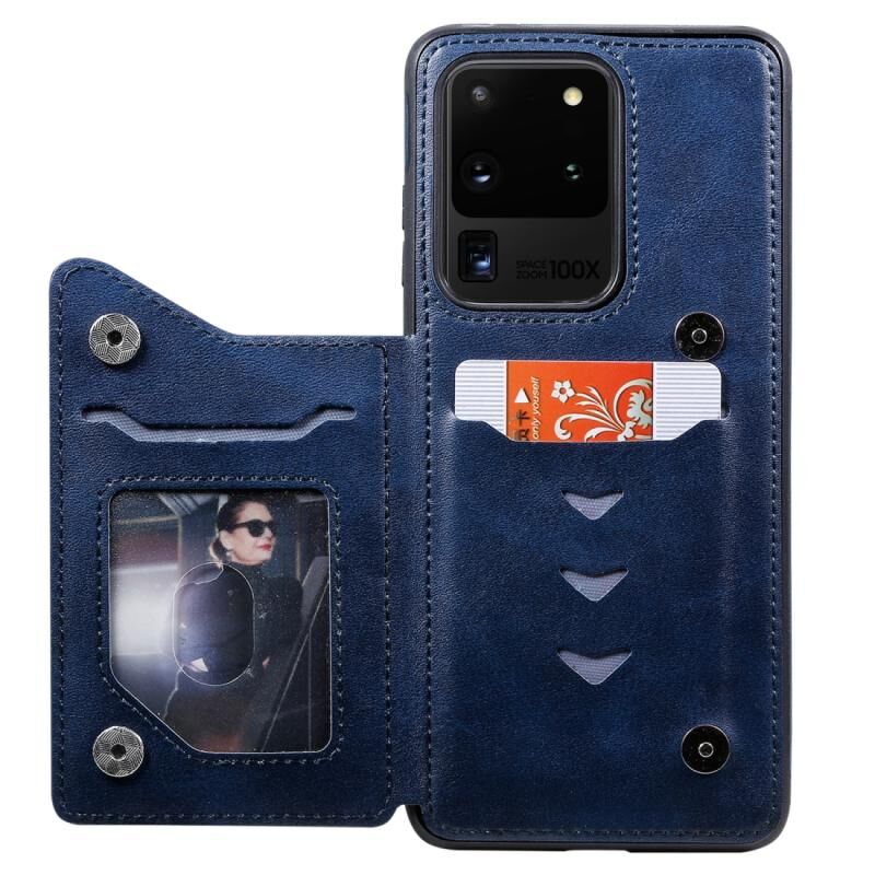 Για το Galaxy S20 Ultra Calf Texture Horizontal Flip Leather Case με θήκη για κάρτες & υποδοχές & πλαίσιο (μπλε)