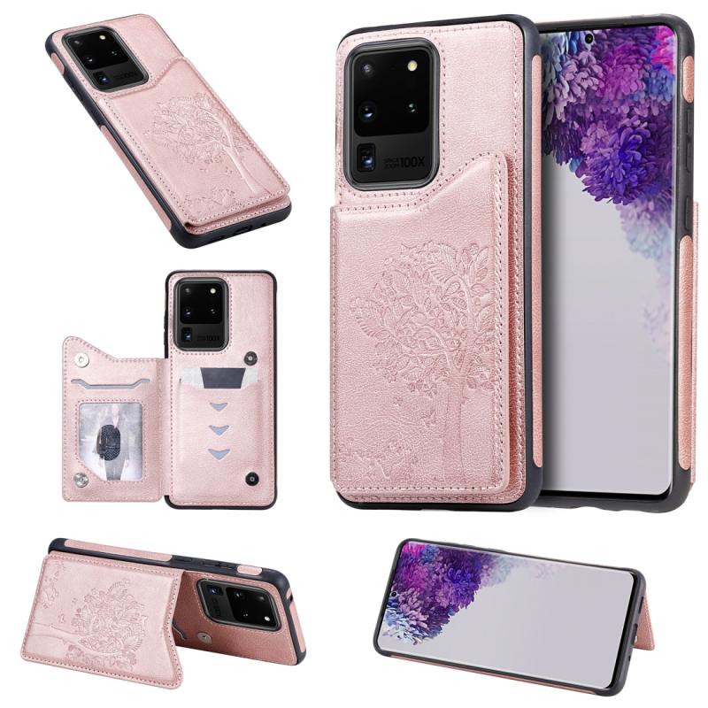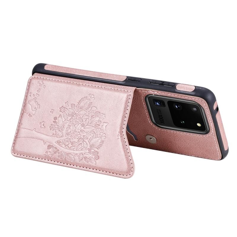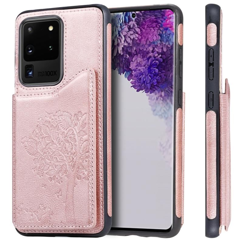 Θήκη προστασίας για Galaxy S20 Ultra με σχέδιο ανάγλυφου δέντρου για γάτες, αντικραδασμική με θήκες για κάρτες & κορνίζα φωτογραφίας (Μωβ)