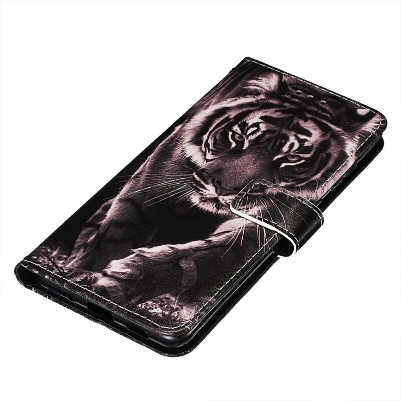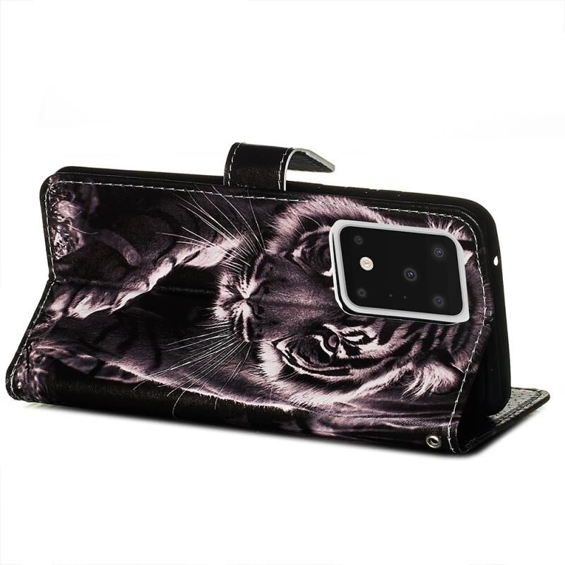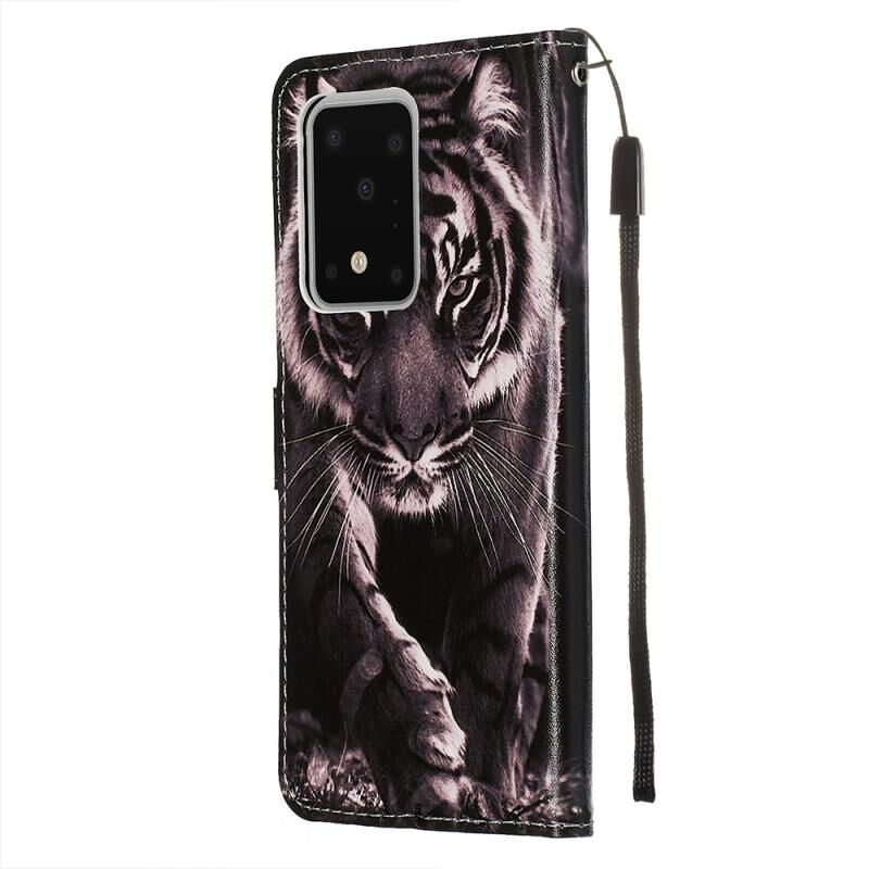 Θήκη δέρματος οριζόντιας αναδίπλωσης για Galaxy S20 Ultra με σχέδιο πολύχρωμης ζωγραφικής, απλή ύφανση, με βάση & θήκη για κάρτες & πορτοφόλι & κορδόνι (Μαύρη και Λευκή Τίγρη)