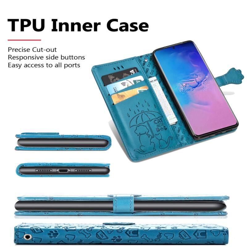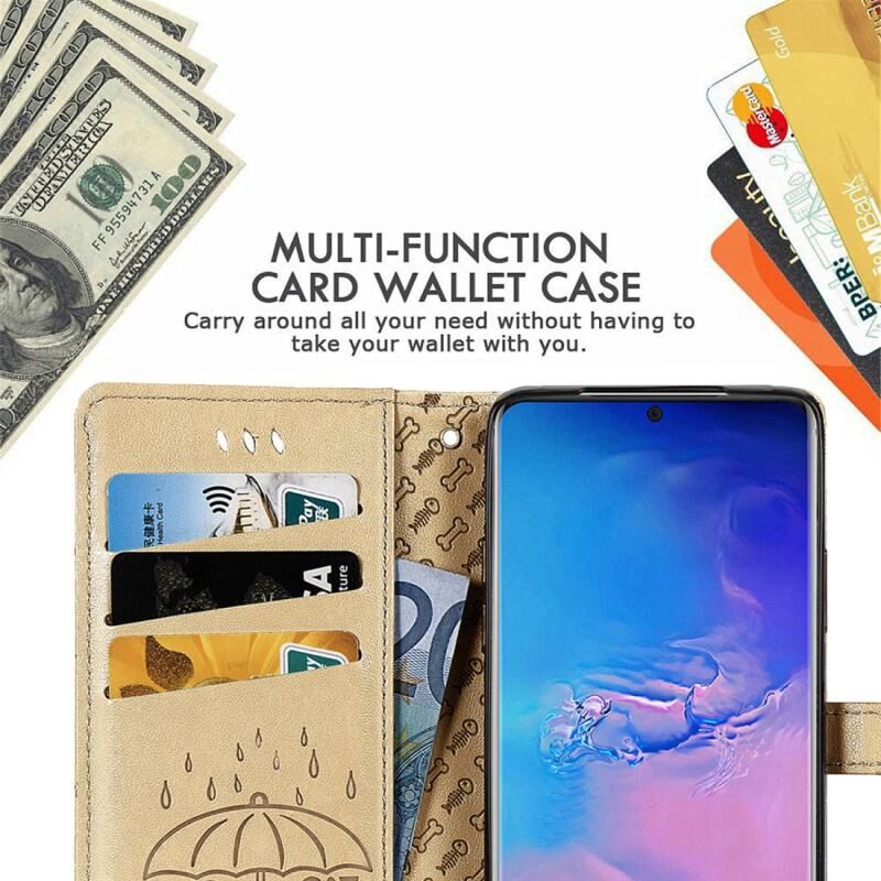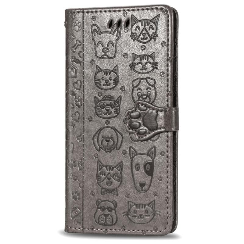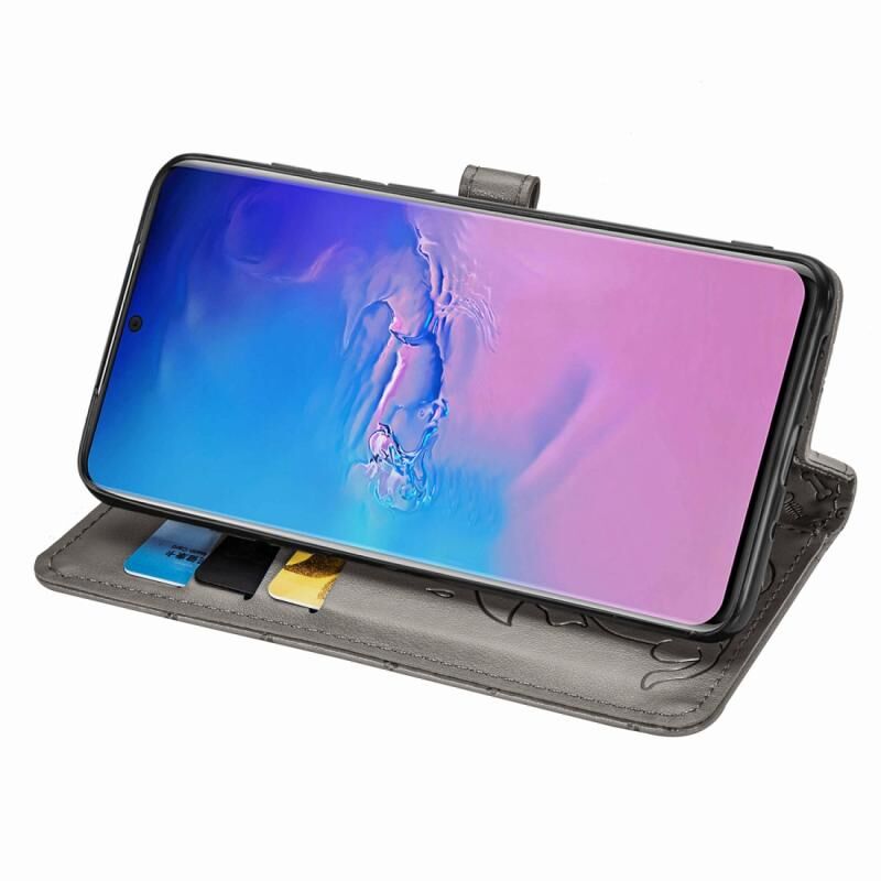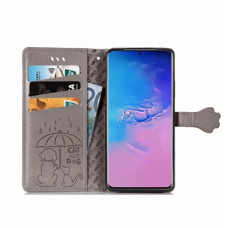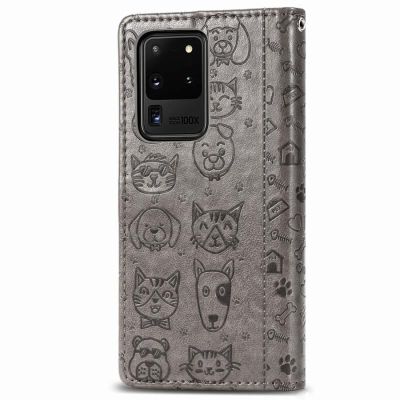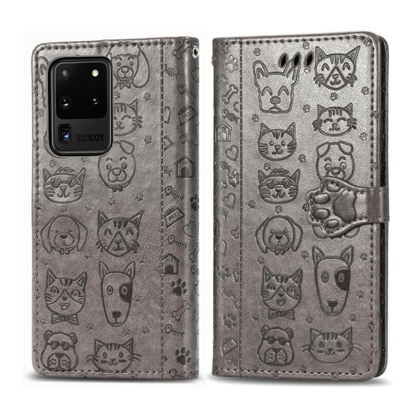 Θήκη οριζόντιας αναδίπλωσης από δερματίνη PU με ανάγλυφα σχέδια χαριτωμένων γάτας και σκύλου για Galaxy S20 Ultra, με βάση / υποδοχή κάρτας / πορτοφόλι / κορδόνι (Γκρι)