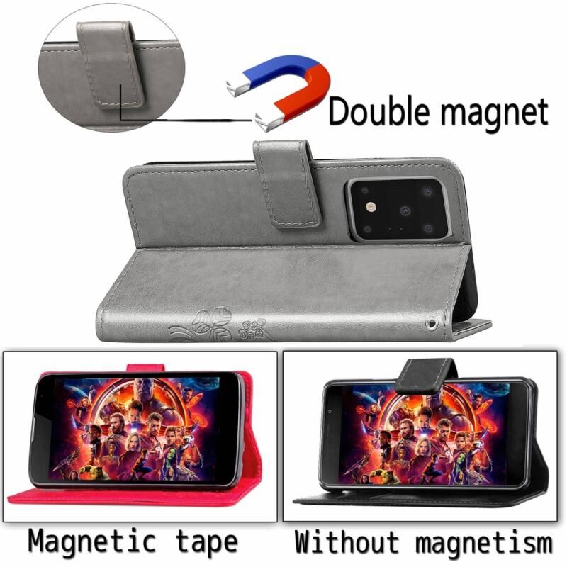 Για Galaxy S20 Ultra Θήκη Προστασίας Δερμάτινη για Κινητό με Κούμπωμα Τριφύλλι, Ρυθμιζόμενη Αγκράφα, Λουρί, Θήκη Καρτών, Πορτοφόλι & Λειτουργία Στήριξης (Γκρι)