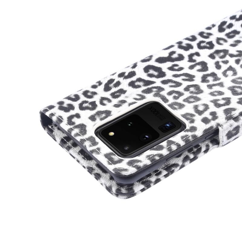 Για Galaxy S20 Ultra Leopard μοτίβο οριζόντια Flip δερμάτινη θήκη με θήκη & υποδοχές για κάρτες (Λευκό)
