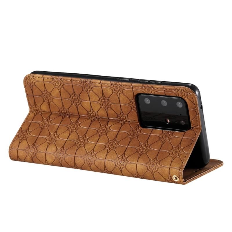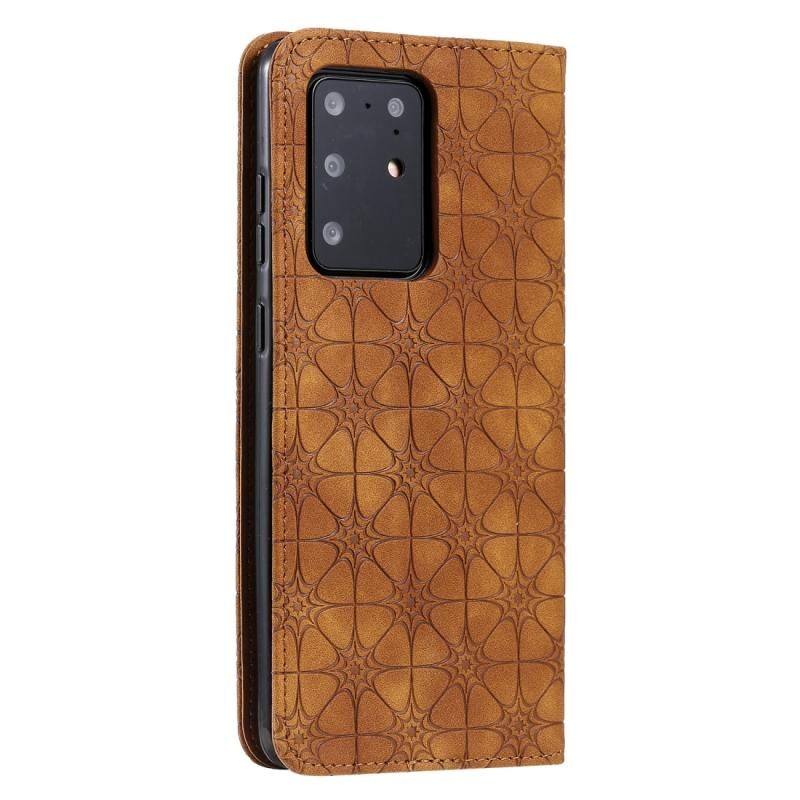 Θήκη δέρματος με μαγνητικό κλείσιμο, οριζόντια, με ανάγλυφο σχέδιο λουλουδιών για Samsung Galaxy S20 Ultra (Σκούρο Μπλε) με βάση και θήκες για κάρτες.