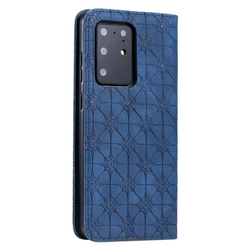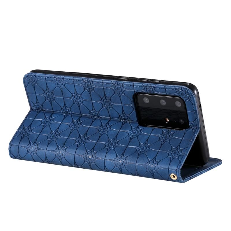 Θήκη δέρματος με μαγνητικό κλείσιμο, οριζόντια, με ανάγλυφο σχέδιο λουλουδιών για Samsung Galaxy S20 Ultra (Σκούρο Μπλε) με βάση και θήκες για κάρτες.