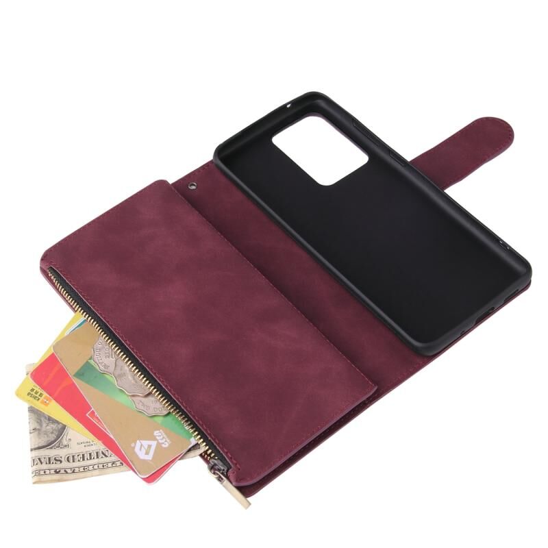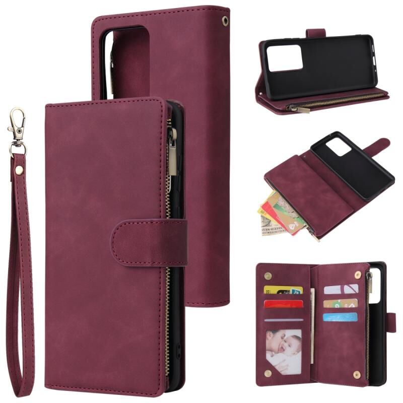 Για Galaxy S20 Ultra Πολυλειτουργική Οριζόντια Flip δερμάτινη θήκη, με υποδοχή για κάρτες & θήκη για κάρτες & φερμουάρ πορτοφόλι & κορνίζα φωτογραφιών (Κόκκινο κρασί)