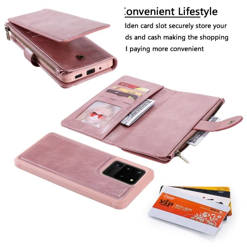 Για Galaxy S20 Ultra Πολυλειτουργική Ρετρό Αποσπώμενη Μαγνητική Οριζόντια Flip Δερμάτινη Θήκη με υποδοχές για κάρτες & θήκη & πορτοφόλι & κορνίζα φωτογραφιών (ρόζ)