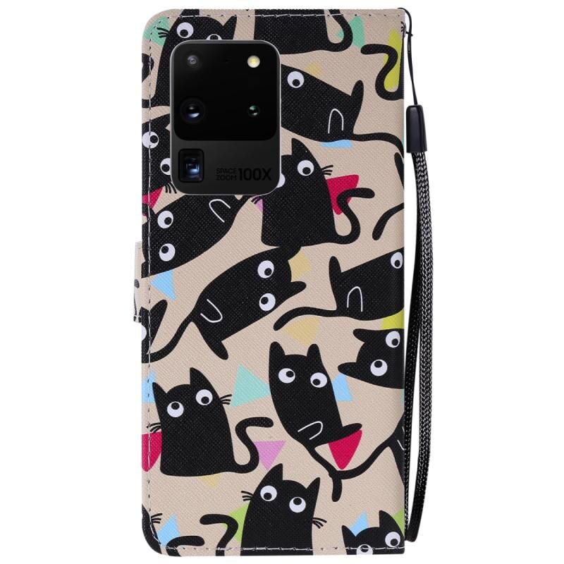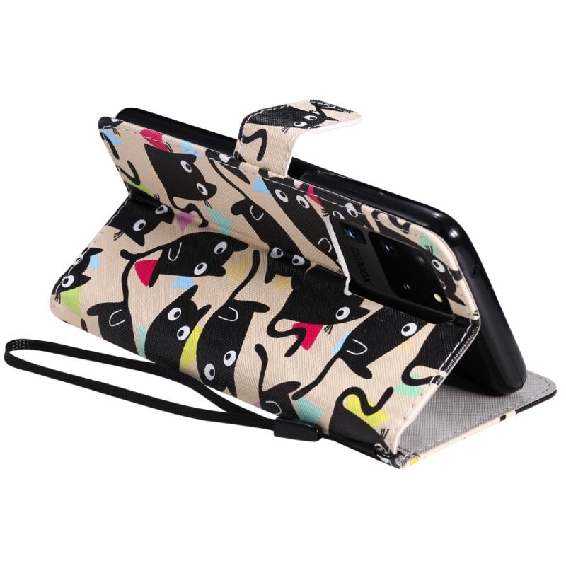 Θήκη δέρματος οριζόντιας αναδίπλωσης για Galaxy S20 Ultra με σχέδιο (Γάτα), με βάση στήριξης & θήκη για κάρτες & κορδόνι.