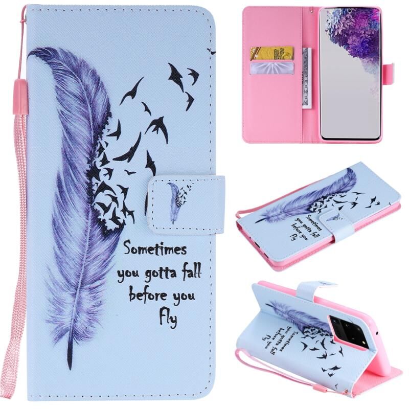 Θήκη δέρματος οριζόντιας αναδίπλωσης για Galaxy S20 Ultra με σχέδιο (Ζωγραφική) με βάση & υποδοχή κάρτας & κορδόνι (Φτερό)