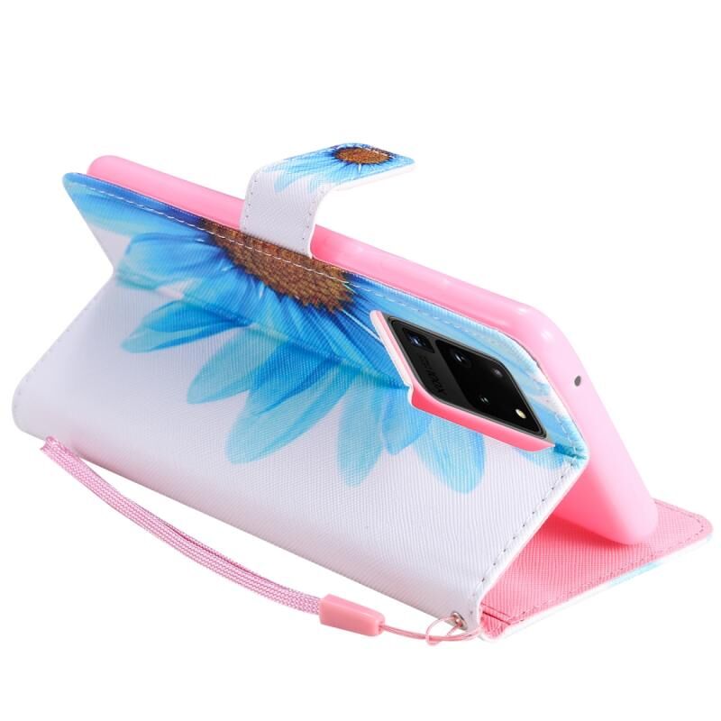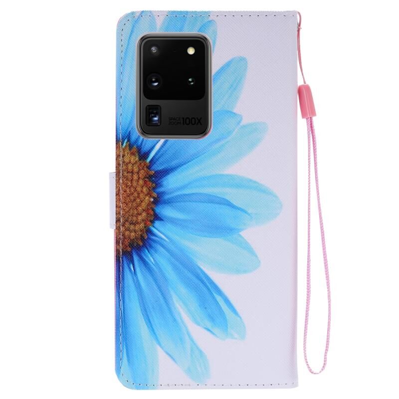Θήκη δέρματος οριζόντιας αναδίπλωσης για Galaxy S20 Ultra με σχέδιο ζωγραφικής, με βάση στήριξης & θήκη καρτών & κορδόνι (Ηλίανθος)
