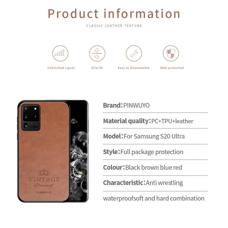 Για Galaxy S20 Ultra Θήκη Προστασίας PINWUYO Pin Rui Series, Κλασική Δερμάτινη Υφή, PC + TPU, Αδιάβροχη, Αντικραδασμική, Πλήρως Περιεκτική (Μπλε) (Κόκκινο)