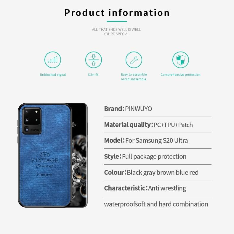 Για Galaxy S20 Ultra Θήκη Προστασίας PINWUYO Zun Series PC + TPU + Skin Αδιάβροχη και Αντικραδασμική, Πλήρως Καλυπτική (Μαύρο) (Μαύρο)