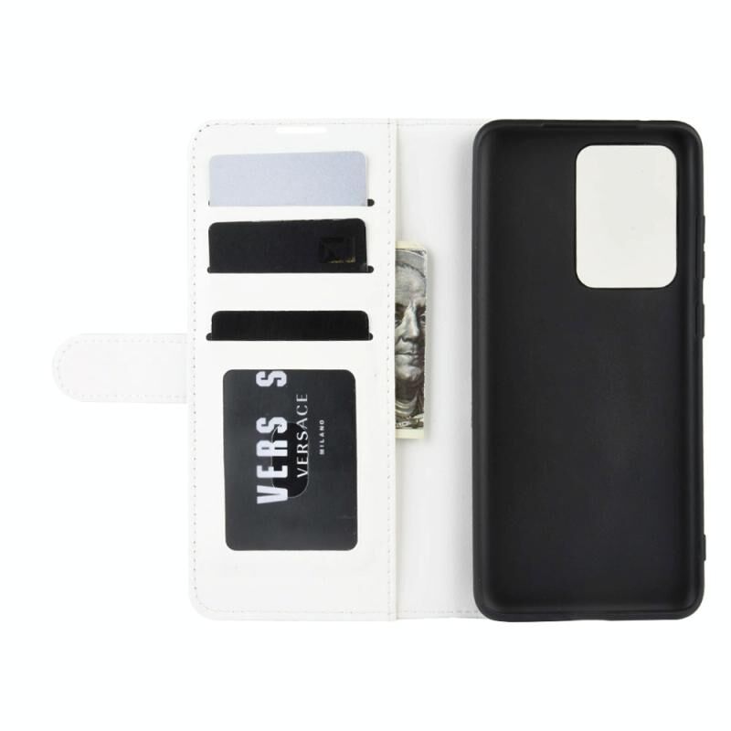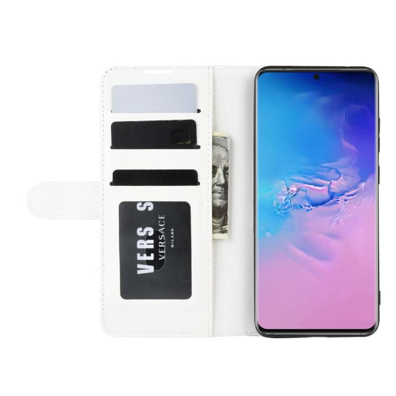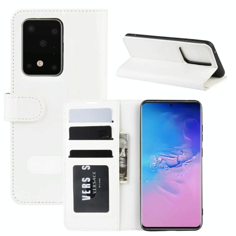 Για Galaxy S20 Ultra R64 Υφή ενιαία οριζόντια Flip προστατευτική θήκη με υποδοχή & υποδοχές για κάρτες & πορτοφόλι & πλαίσιο φωτογραφιών (λευκό)