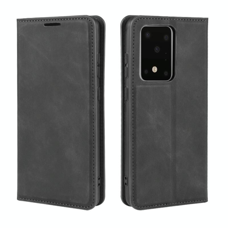 Για Galaxy S20 Ultra Retro-skin Business Μαγνητική δερμάτινη θήκη αναρρόφησης με θήκη & υποδοχές καρτών & πορτοφόλι (Μαύρο)