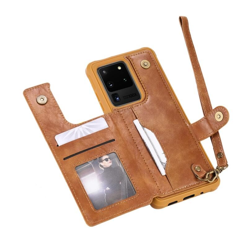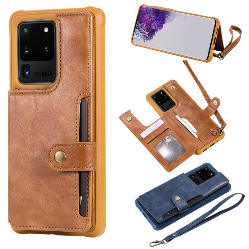 Για Galaxy S20 Ultra Shockproof Οριζόντια Flip Προστατευτική θήκη με θήκη & υποδοχές για κάρτες & πορτοφόλι & πλαίσιο φωτογραφιών & κοντό + μακρύ κορδόνι (καφέ)