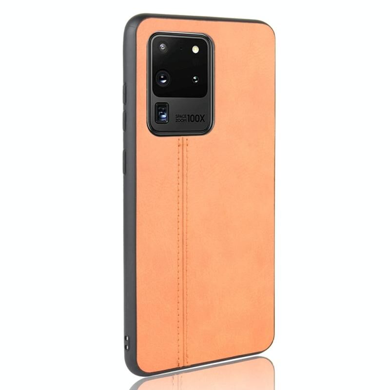 Για Galaxy S20 Ultra Shockproof Ράψιμο αγελάδα μοτίβο δέρματος PC + PU + TPU υπόθεση (πορτοκαλί)