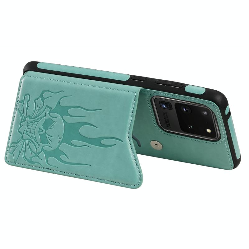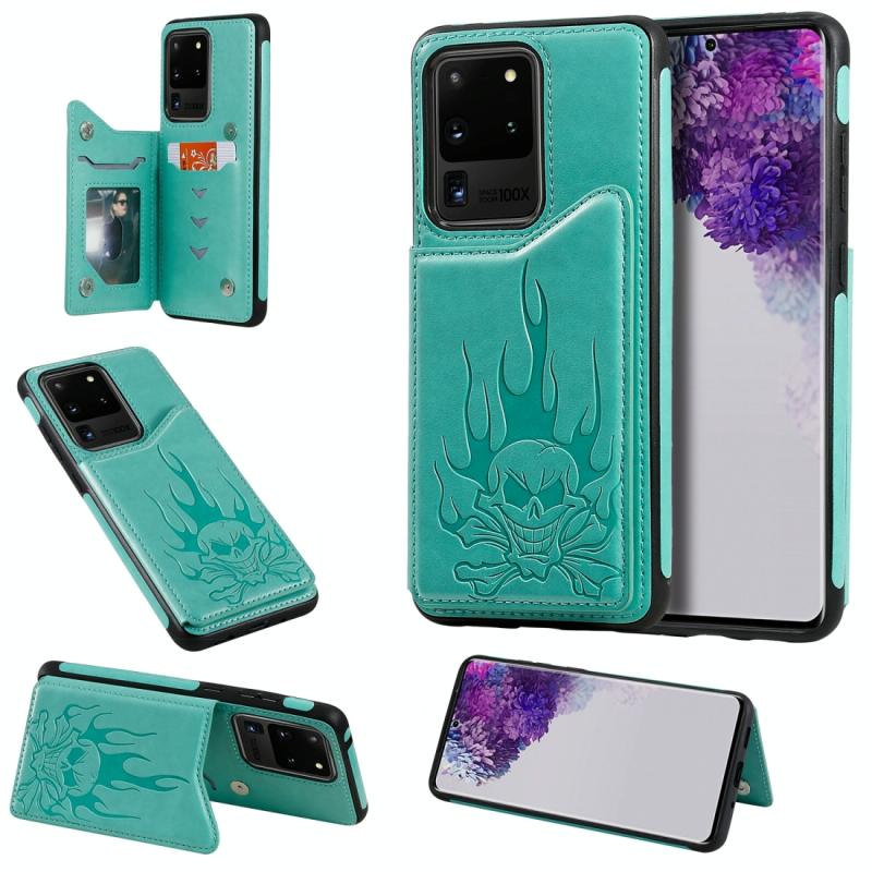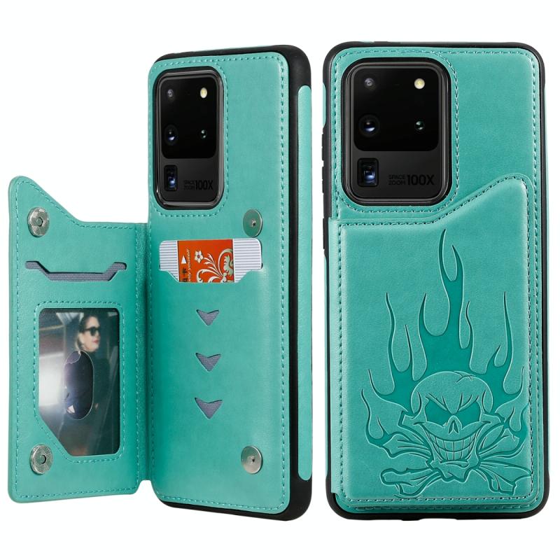 Θήκη προστασίας με ανάγλυφο σχέδιο κρανίου, αντικραδασμική για Samsung Galaxy S20 Ultra με θήκες για κάρτες & κορνίζα φωτογραφίας (πράσινο)