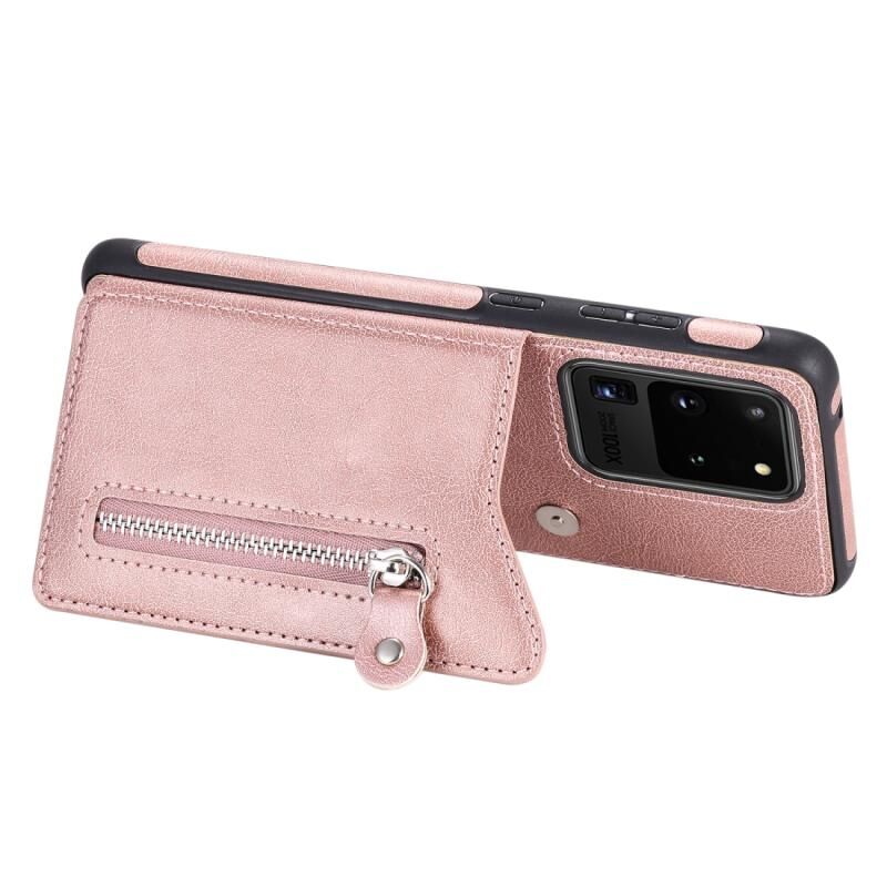 Για το Galaxy S20 Ultra Solid Color Διπλό πόρπη φερμουάρ Shockproof προστατευτική θήκη (Rose Gold)