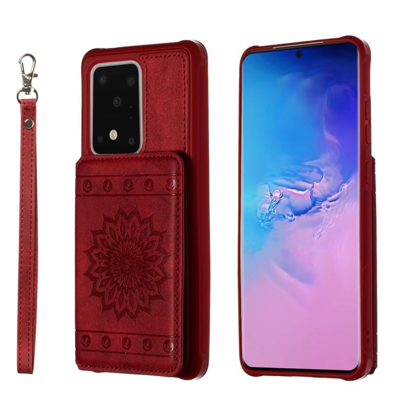 Για Galaxy S20 Ultra Sun Flower μοτίβο ανάγλυφο οριζόντια Drop-proof κινητό τηλέφωνο υπόθεση με υποδοχές για κάρτες & πορτοφόλι & φωτογραφική θήκη & Stand λειτουργία (Κόκκινο)