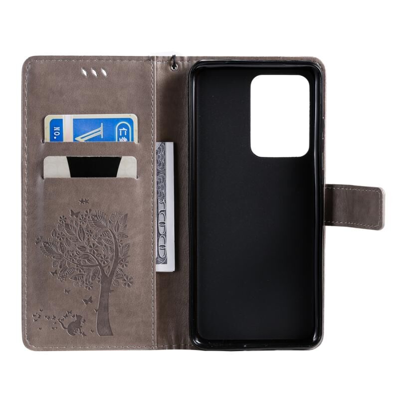 Θήκη για Galaxy S20 Ultra με σχέδιο Δέντρου & Γάτας, εκτυπωμένη με θερμοτύπηση, οριζόντια, από δερματίνη PU με βάση στήριξης & θήκες για κάρτες & πορτοφόλι & κορδόνι (Πράσινο)