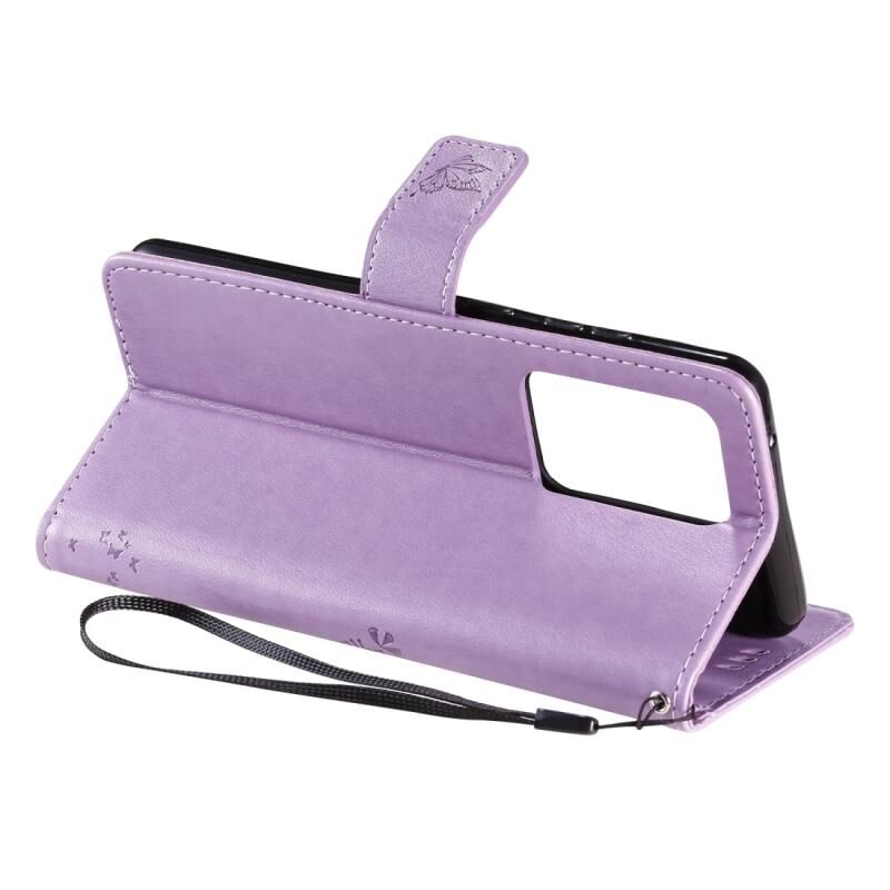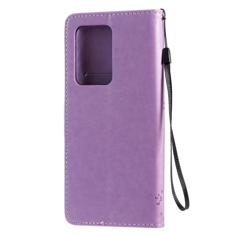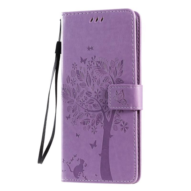 Θήκη για Galaxy S20 Ultra με σχέδιο Δέντρου & Γάτας, εκτυπωμένη με θερμοτύπηση, οριζόντια, από δερματίνη PU με βάση στήριξης & θήκες για κάρτες & πορτοφόλι & κορδόνι (Ανοιχτό Μωβ)