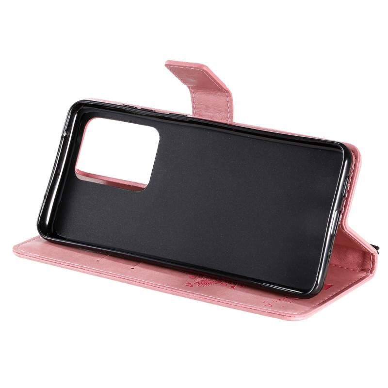 Θήκη για Galaxy S20 Ultra με σχέδιο Δέντρου & Γάτας, εκτυπωμένη με θερμοτύπηση, οριζόντια, από δερματίνη PU με βάση στήριξης & θήκες για κάρτες & πορτοφόλι & κορδόνι (Χρυσό Ρόδι)
