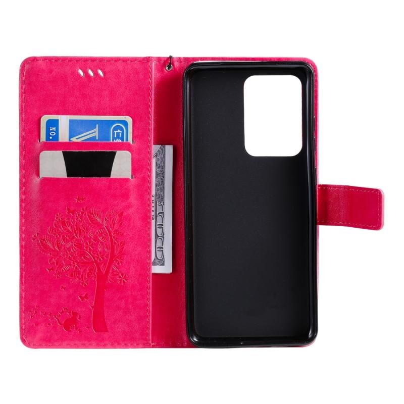 Θήκη για Galaxy S20 Ultra με σχέδιο Δέντρου & Γάτας, εκτυπωμένη με θερμοτύπηση, οριζόντια, από δερματίνη PU με βάση στήριξης & θήκες για κάρτες & πορτοφόλι & κορδόνι (Πράσινο)