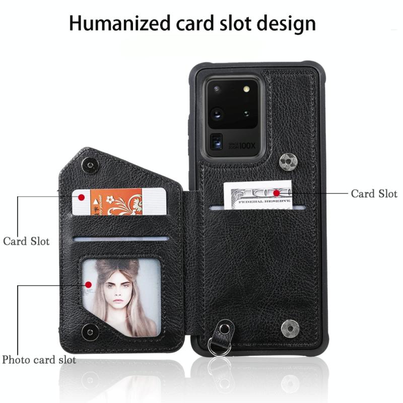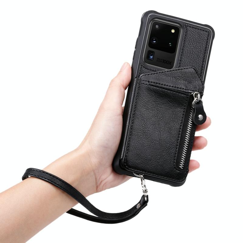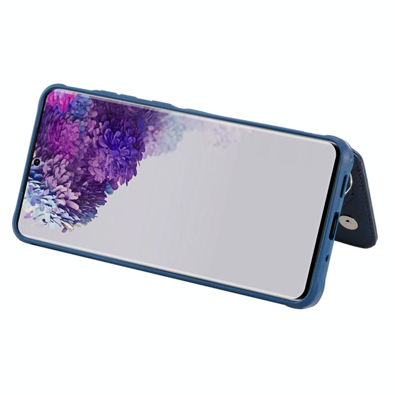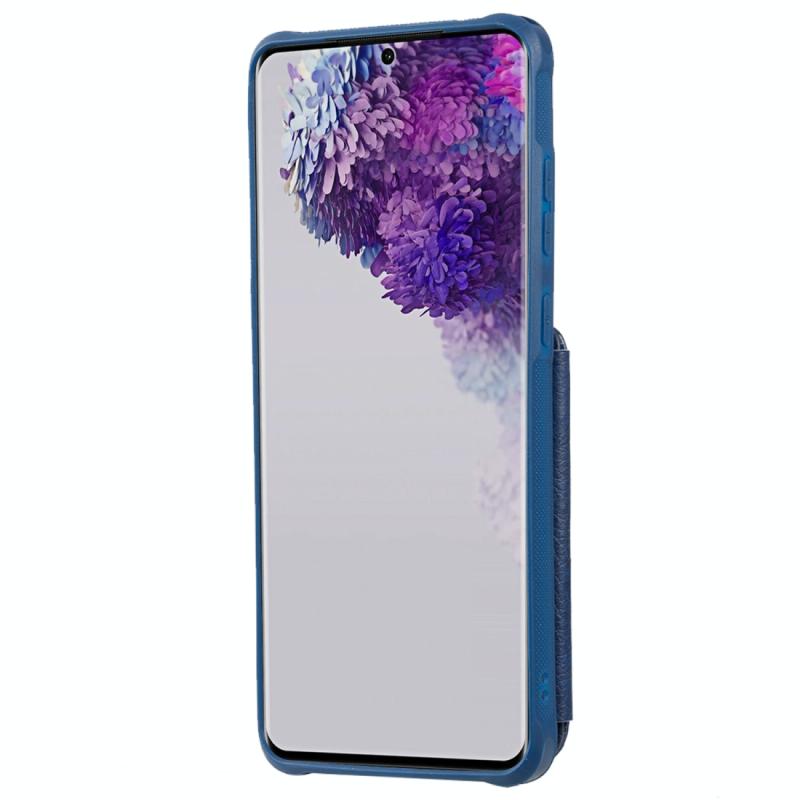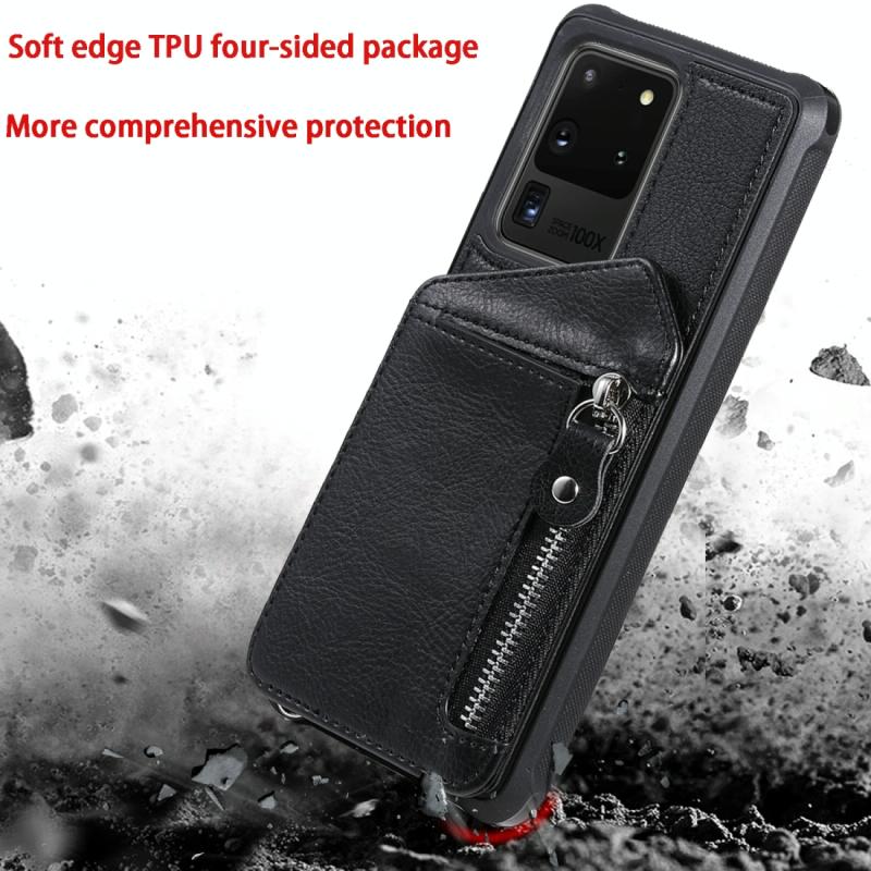 Θήκη προστασίας με φερμουάρ και διπλή αγκράφα για Galaxy S20 Ultra, ανθεκτική σε κρούσεις, με βάση στήριξης, θήκη φωτογραφιών και λειτουργία πορτοφολιού (Μπλε)