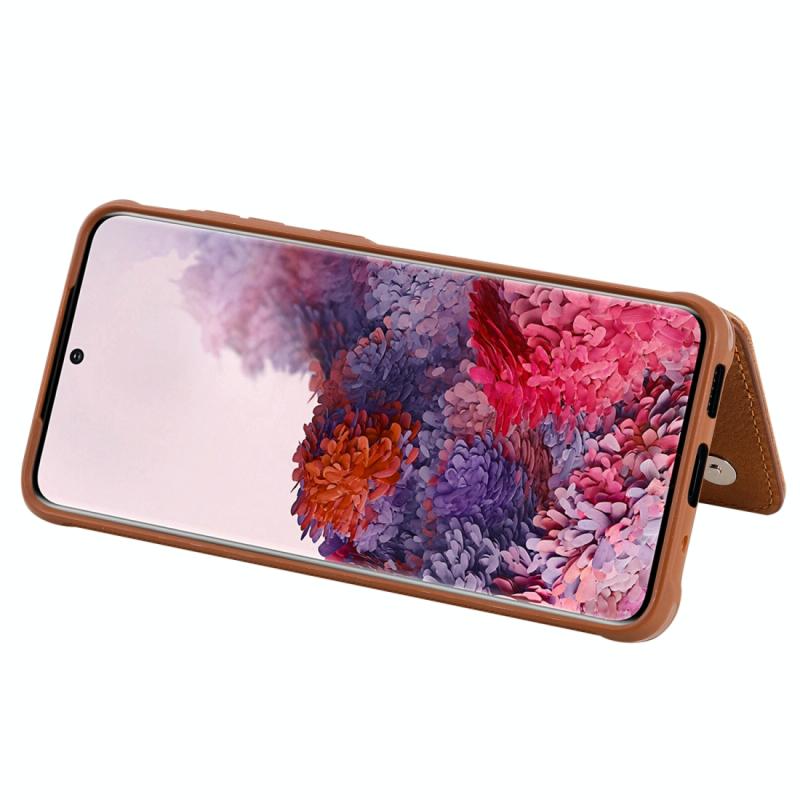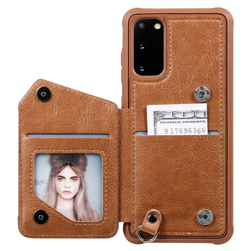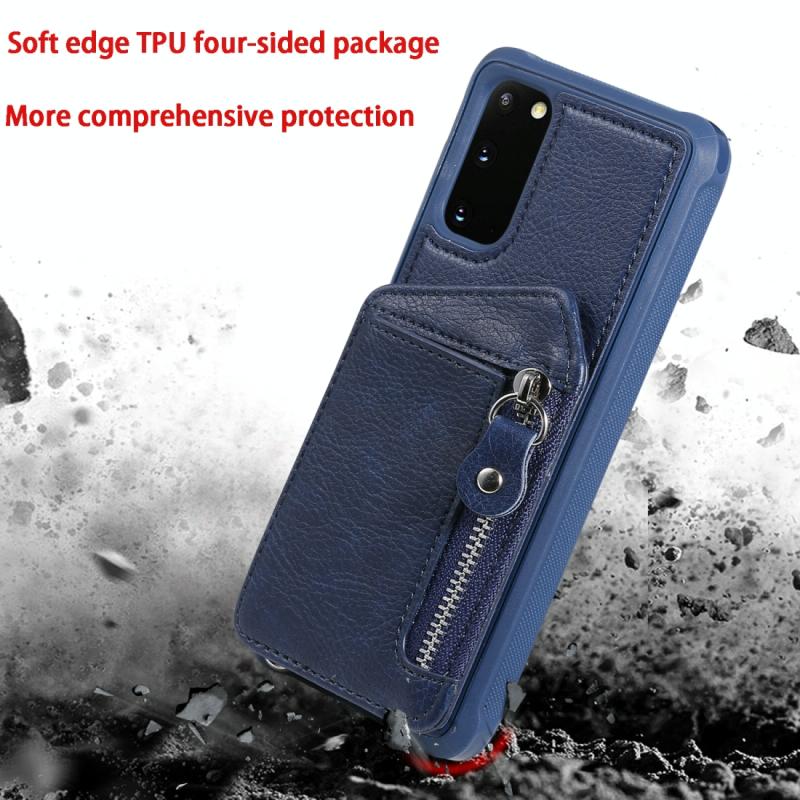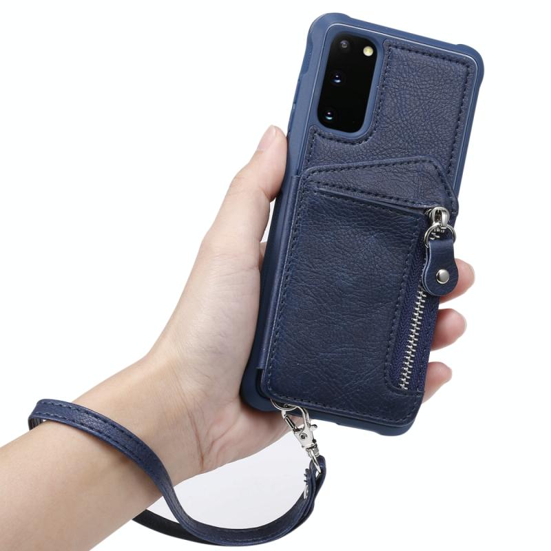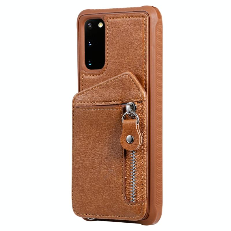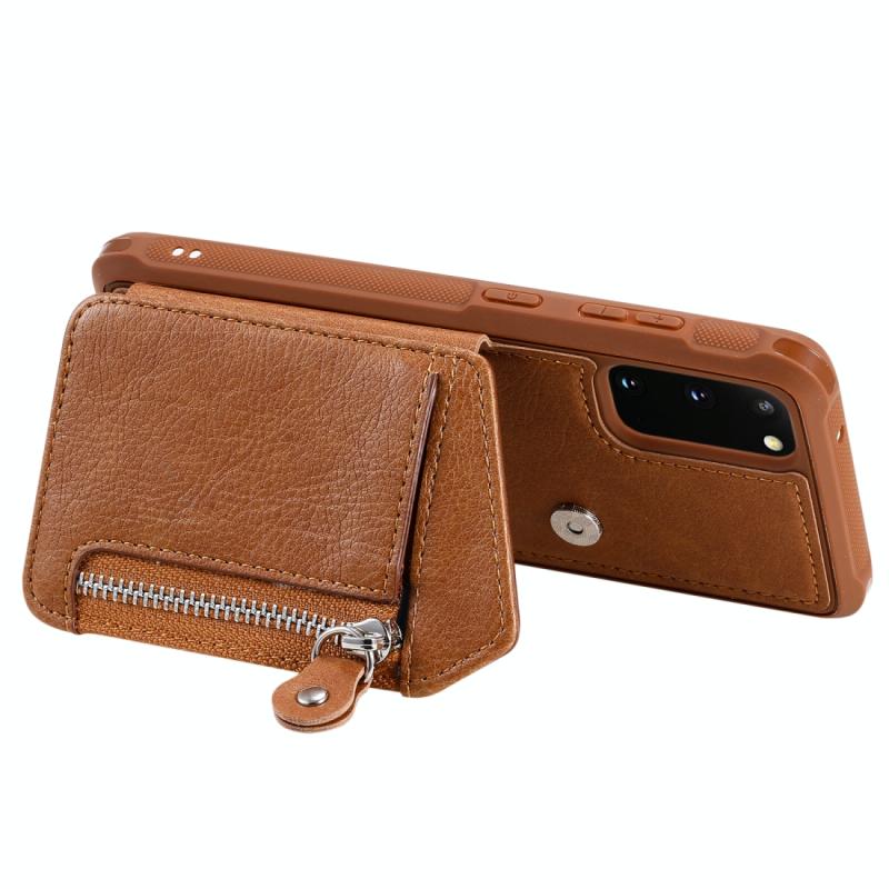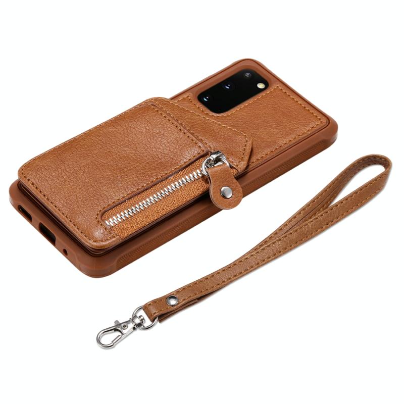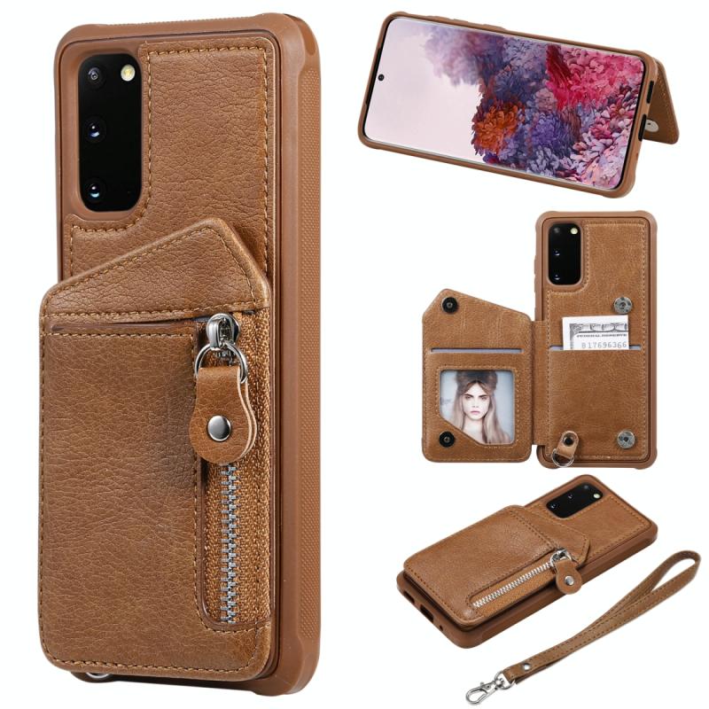 Θήκη προστασίας με φερμουάρ και διπλή αγκράφα για Galaxy S20, ανθεκτική σε κρούσεις, με βάση στήριξης, θήκη φωτογραφιών και λειτουργία πορτοφολιού (Καφέ)