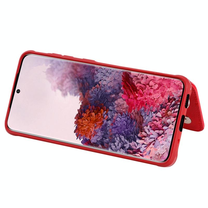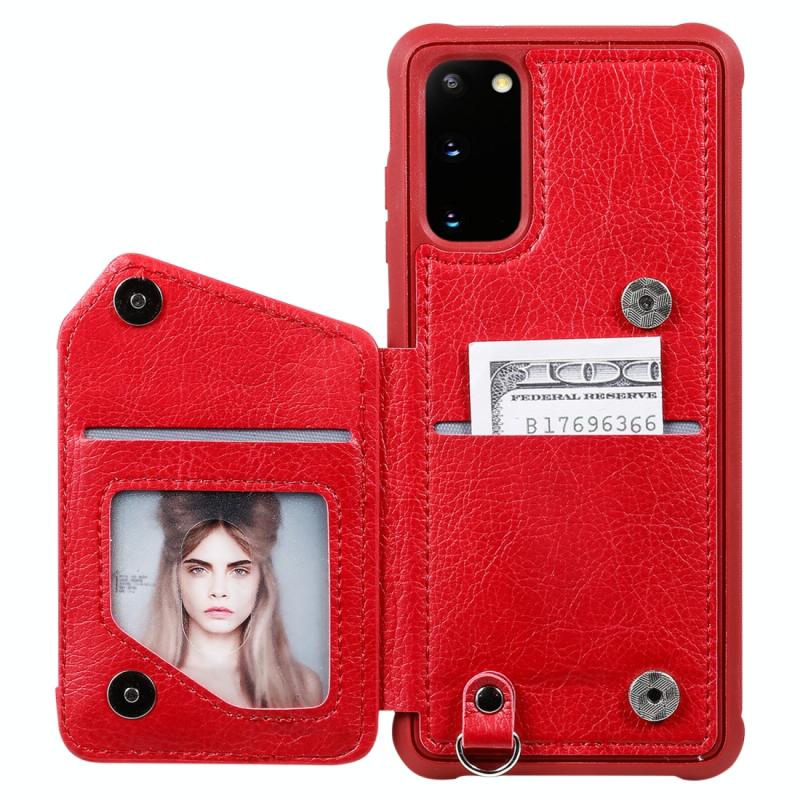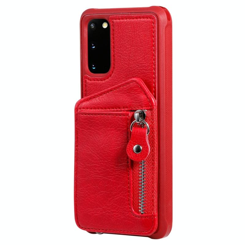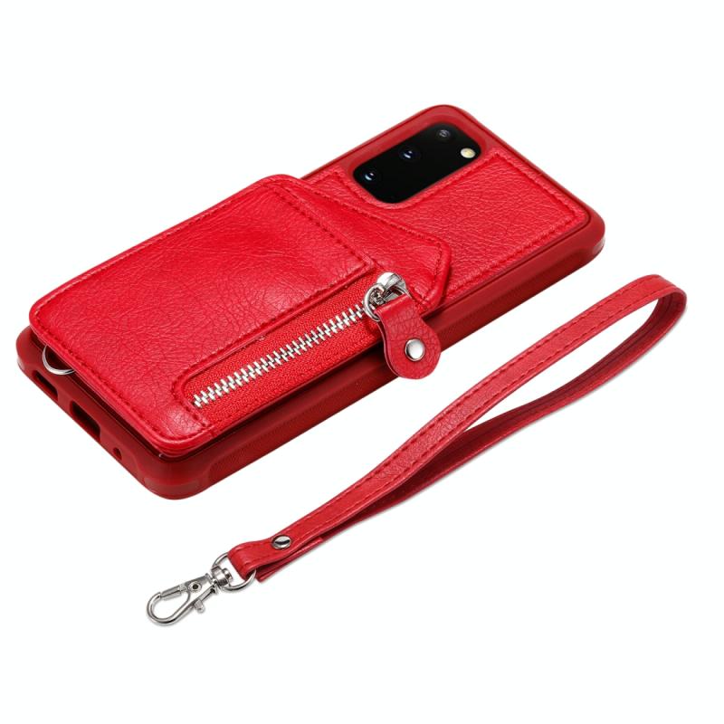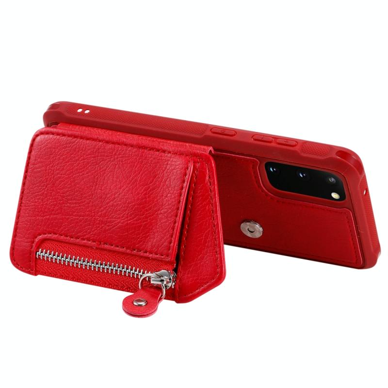 Θήκη προστασίας με φερμουάρ και διπλή αγκράφα για Galaxy S20, ανθεκτική σε κρούσεις, με βάση στήριξης, θήκη φωτογραφιών και λειτουργία πορτοφολιού (Κόκκινο)