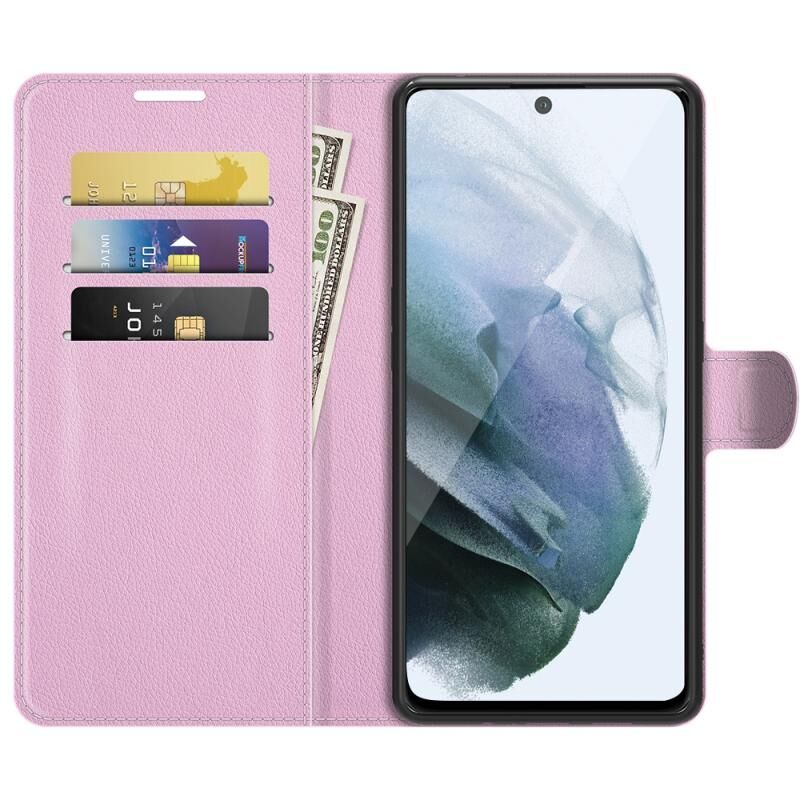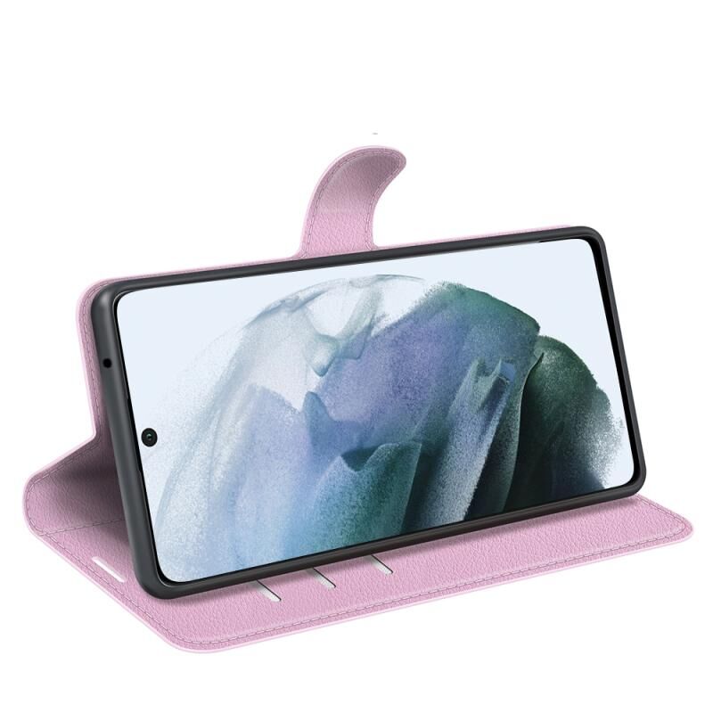 Για Galaxy S21 FE Litchi Υφή Οριζόντια Flip Προστατευτική θήκη με θήκη & υποδοχές για κάρτες & πορτοφόλι (ροζ)