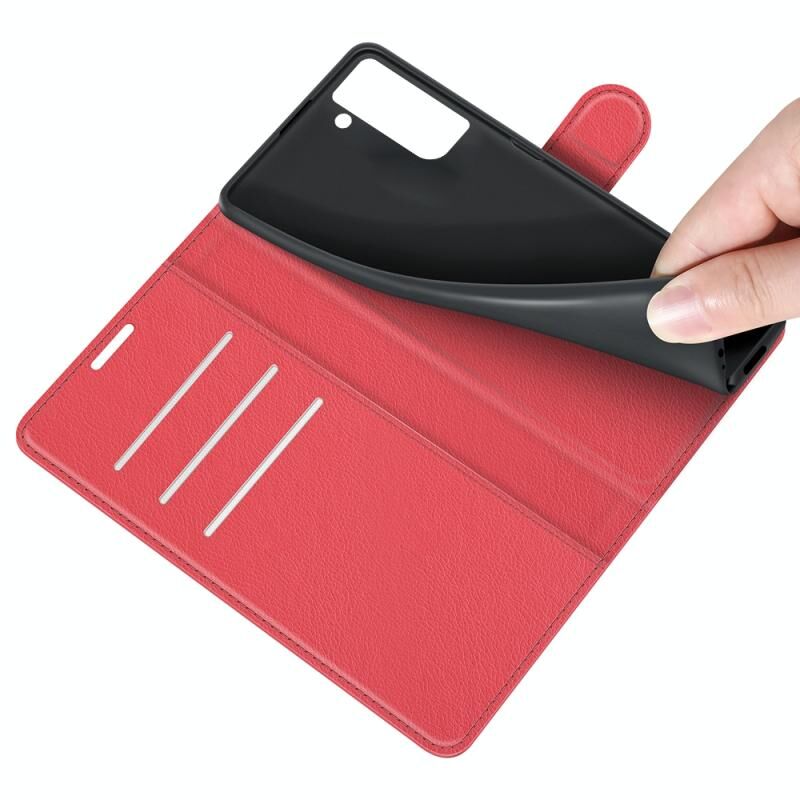 Για Galaxy S21 FE Litchi Υφή Οριζόντια Flip Προστατευτική θήκη με θήκη & υποδοχές για κάρτες & πορτοφόλι (κόκκινο)