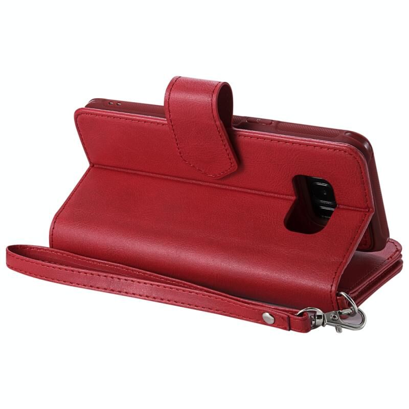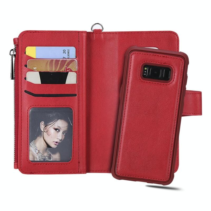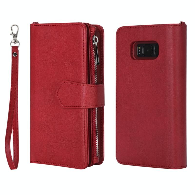 Για Galaxy S8 2 σε 1 Αμιγές χρώμα φερμουάρ Shockproof προστατευτική θήκη με υποδοχές για κάρτες & βραχίονα & φωτογραφική θήκη & λειτουργία πορτοφόλι (κόκκινο)