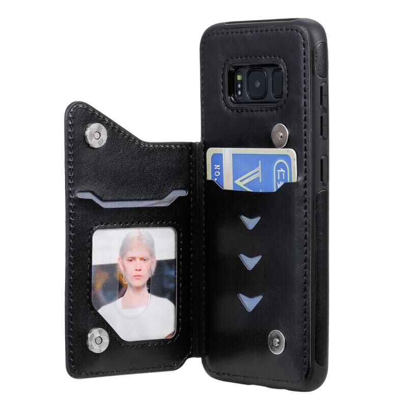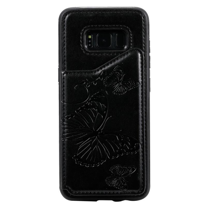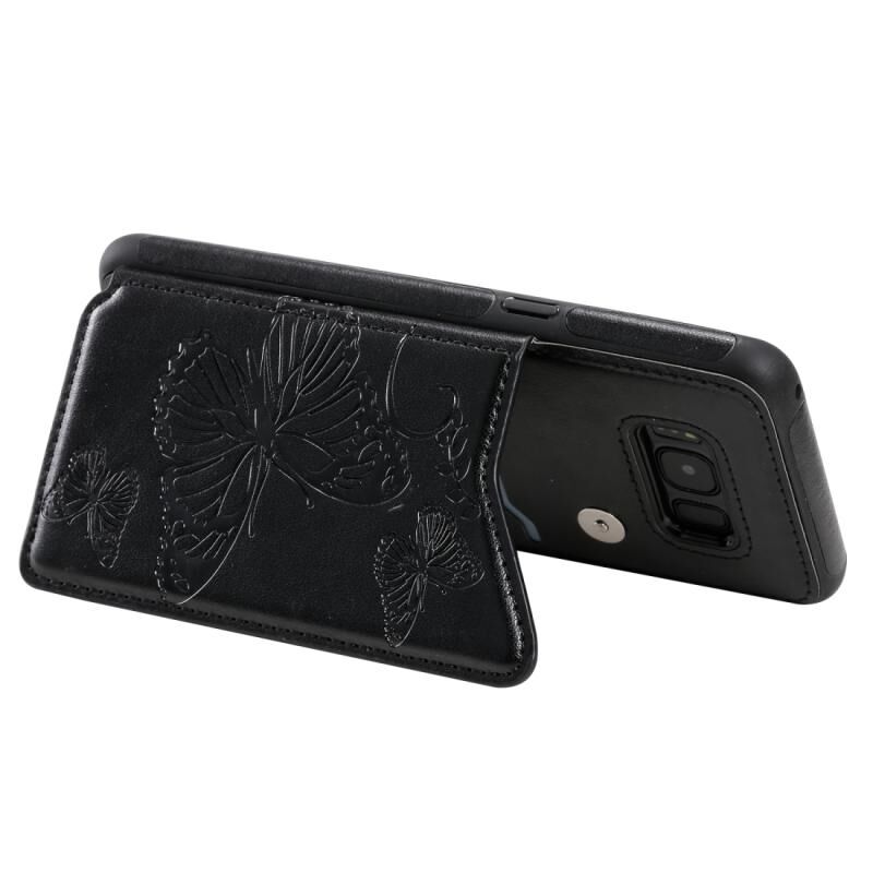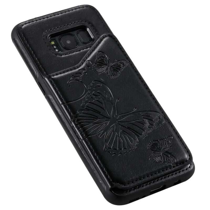 Θήκη προστασίας με ανάγλυφο σχέδιο πεταλούδας για Galaxy S8, ανθεκτική σε κρούσεις, με βάση στήριξης, θήκες για κάρτες & κορνίζα φωτογραφιών (Μαύρο)