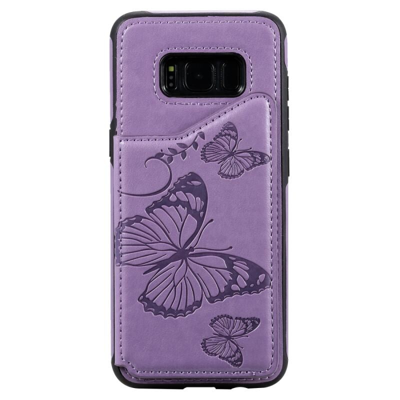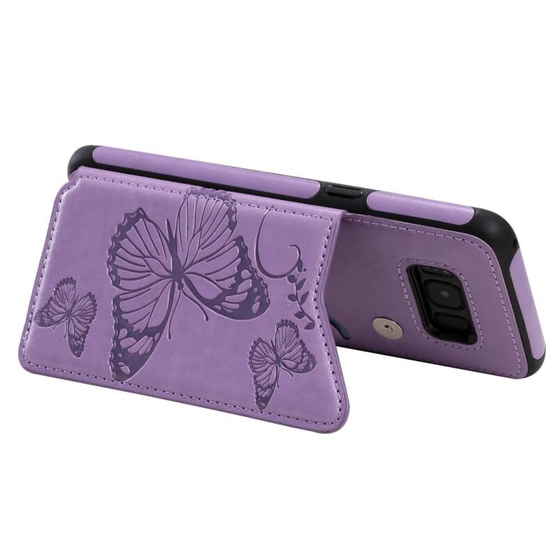 Θήκη προστασίας με ανάγλυφο σχέδιο πεταλούδας για Galaxy S8, ανθεκτική σε κρούσεις, με βάση στήριξης, θήκες για κάρτες & κορνίζα φωτογραφιών (Μωβ)