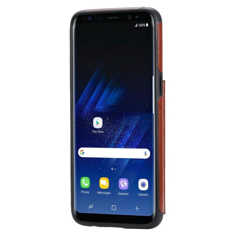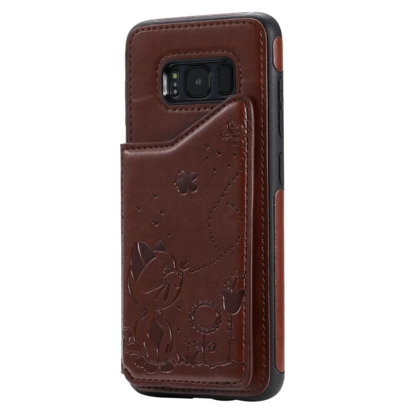 For Galaxy S8 Cat Bee Embossing Pattern Shockproof Protective Case with Card Slots & Photo Frame(Brown)