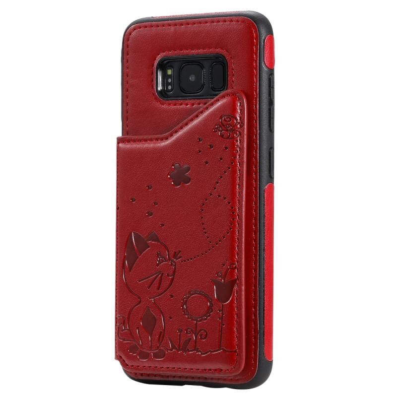 Θήκη προστασίας με ανάγλυφο σχέδιο Cat Bee για Galaxy S8, ανθεκτική στις κρούσεις, με θήκες για κάρτες & κορνίζα φωτογραφιών (Γκρι)