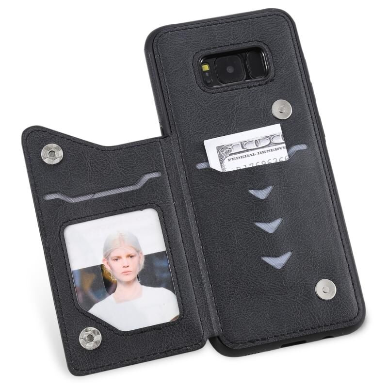 Θήκη προστασίας για Galaxy S8+ με σχέδιο ανάγλυφου, αντι-κραδασμική, με θήκες για κάρτες, κορνίζα φωτογραφιών & βάση στήριξης (Μωβ)