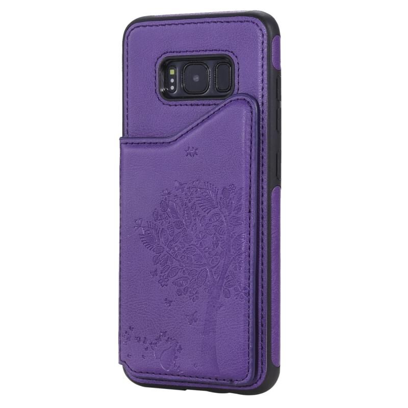 Θήκη προστασίας για Galaxy S8 με σχέδιο ανάγλυφου δέντρου, αντικραδασμική, με θήκες για κάρτες & κορνίζα φωτογραφιών & βάση στήριξης (Μωβ)