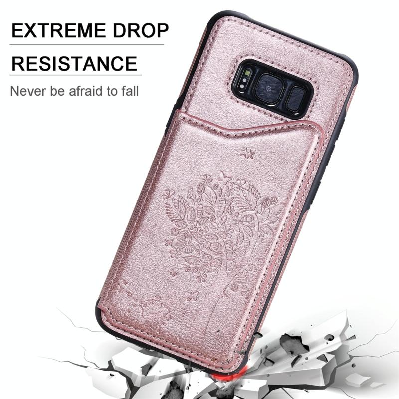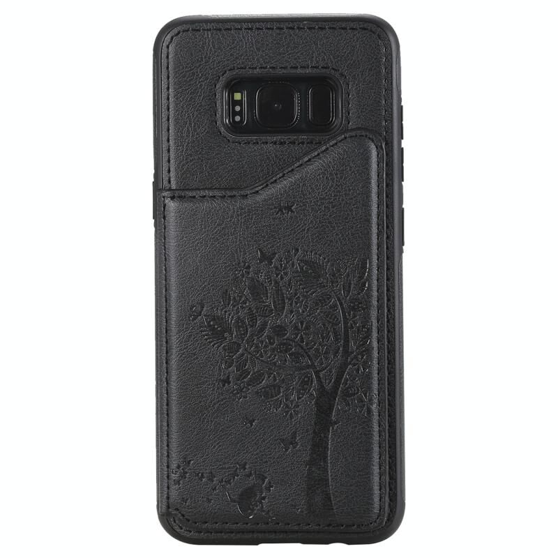 For Galaxy S8 Cat Tree Embossing Pattern Shockproof Protective Case with Card Slots & Photo Frame(Black)