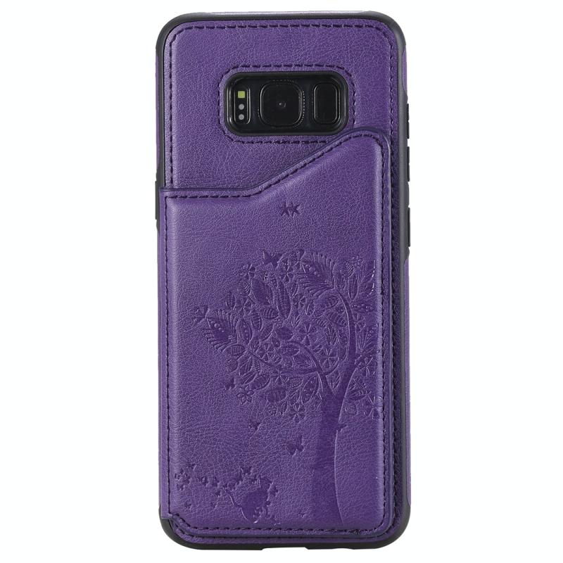 For Galaxy S8 Cat Tree Embossing Pattern Shockproof Protective Case with Card Slots & Photo Frame(Purple)