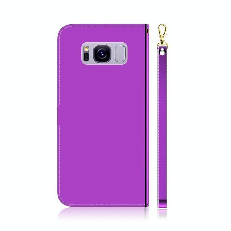 Για Galaxy S8 Απομιμητική επιφάνεια καθρέφτη Οριζόντια Flip δερμάτινη θήκη με θήκη & υποδοχές για κάρτες & πορτοφόλι & κορδόνι (μωβ)