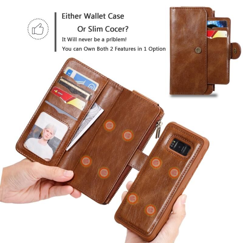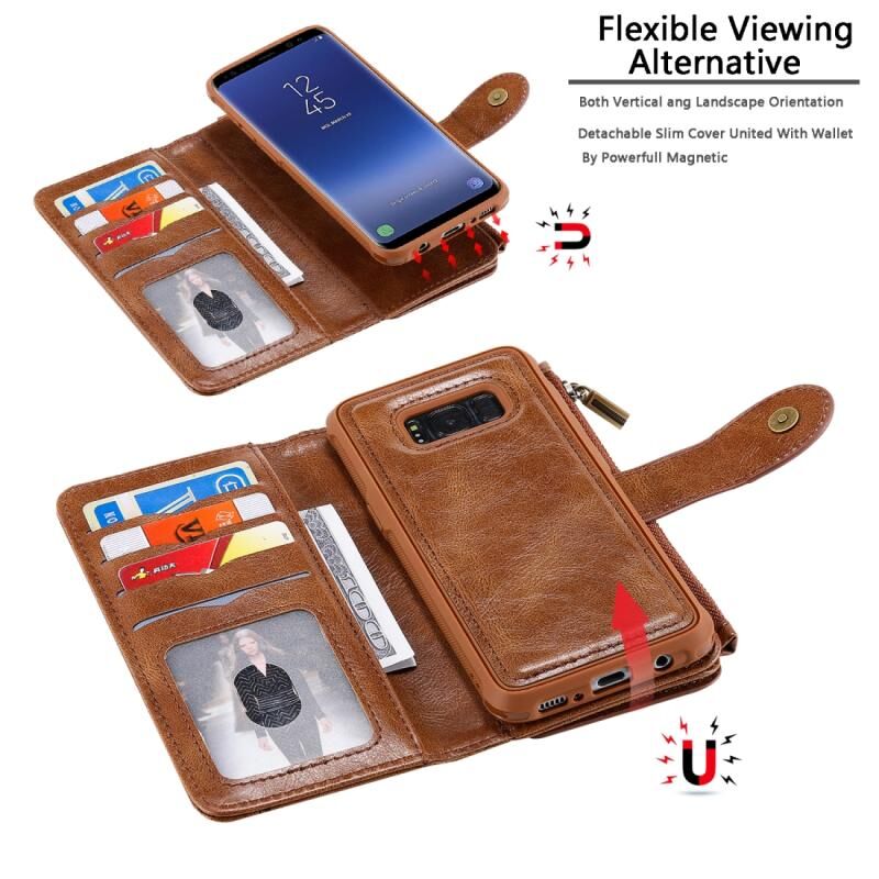 Για Galaxy S8 Πολυλειτουργική Ρετρό αποσπώμενη μαγνητική οριζόντια δερμάτινη θήκη με υποδοχές για κάρτες και θήκη για πορτοφόλι και κορνίζα φωτογραφιών (Καφέ)