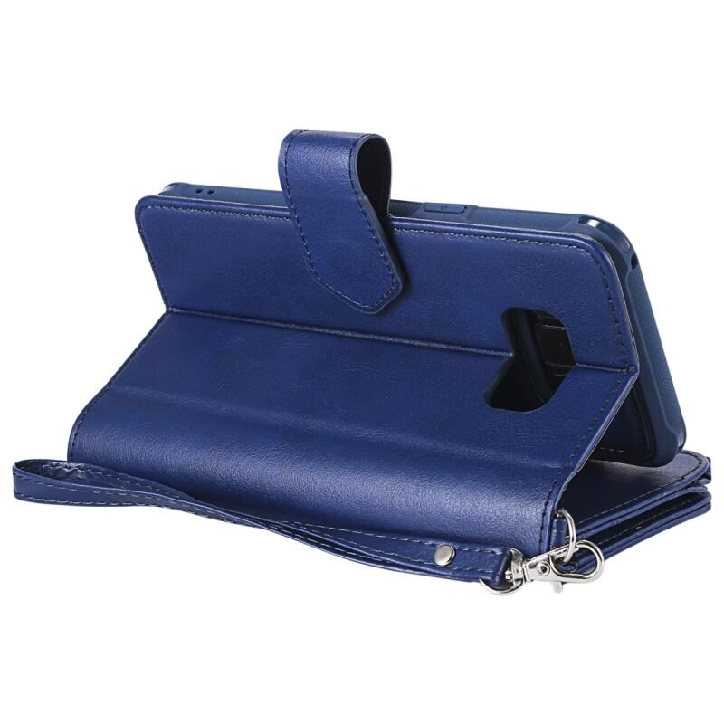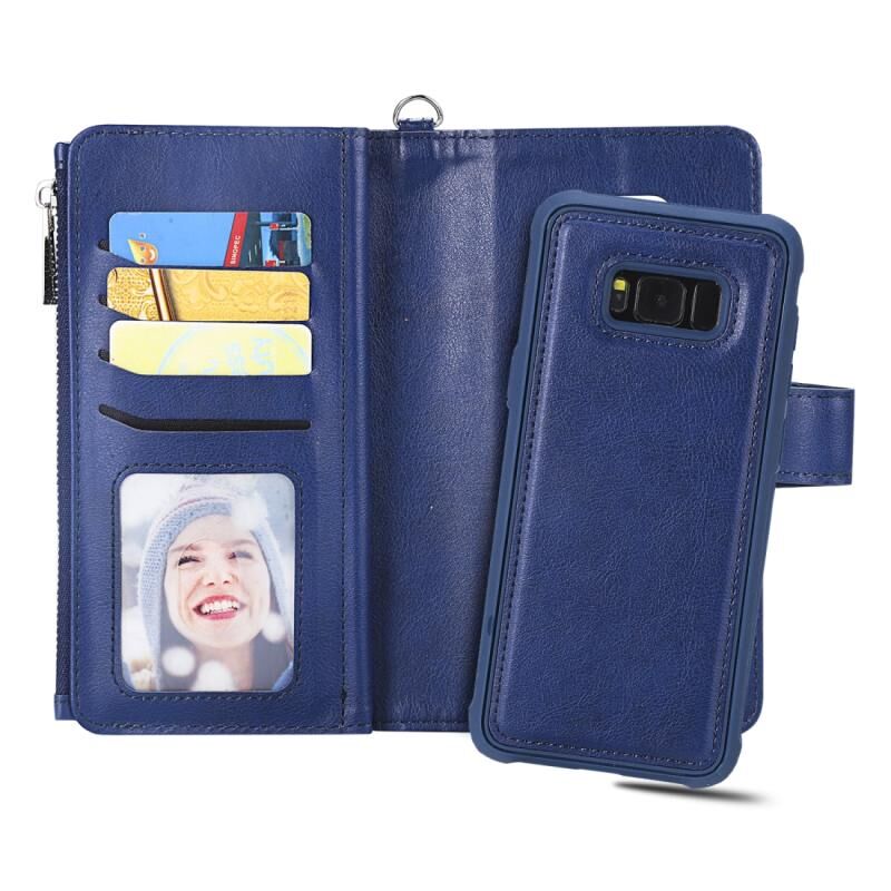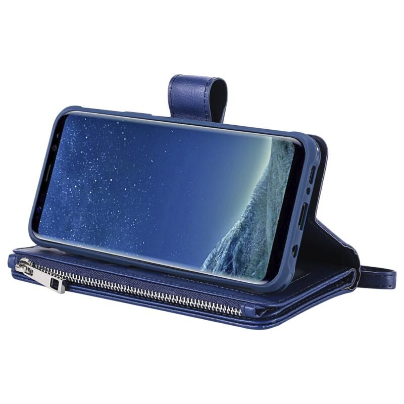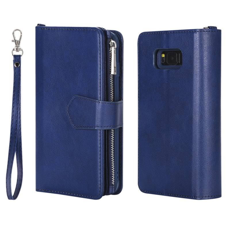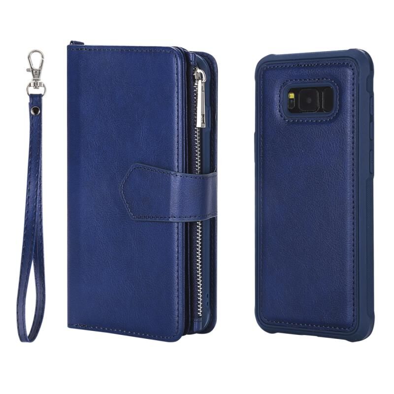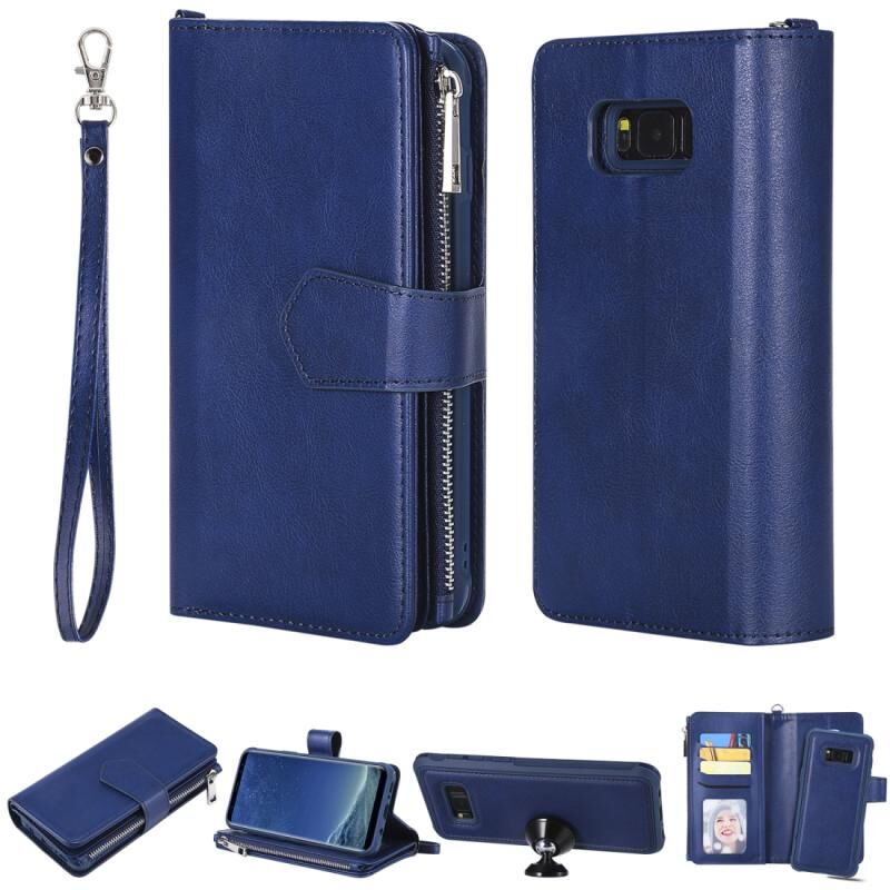 Για Galaxy S8 Plus 2 σε 1 Αμιγές χρώμα φερμουάρ Shockproof προστατευτική θήκη με υποδοχές για κάρτες & βραχίονα & φωτογραφική θήκη & λειτουργία πορτοφόλι (μπλε)