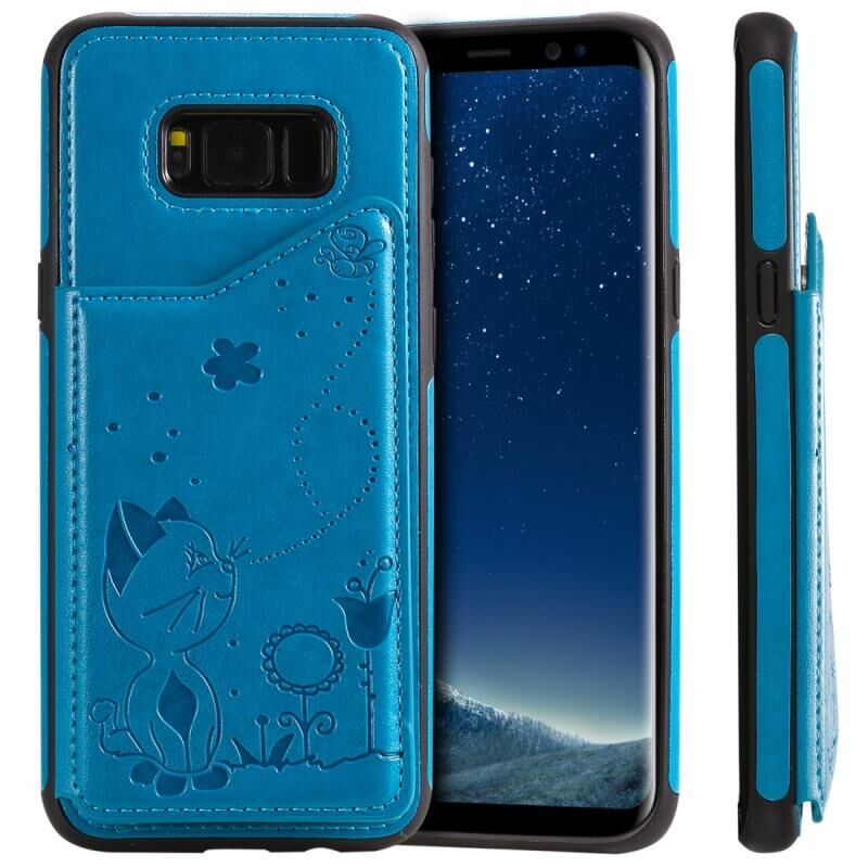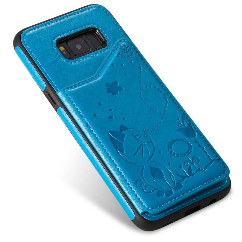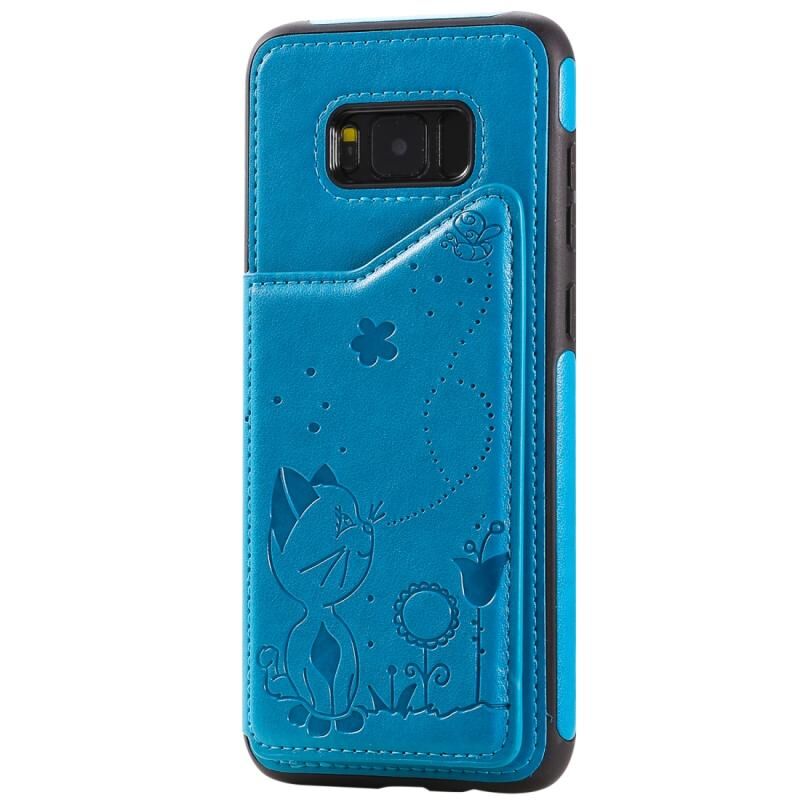 Θήκη προστασίας με ανάγλυφο σχέδιο Cat Bee για Galaxy S8 Plus, ανθεκτική στις κρούσεις, με θήκες για κάρτες & κορνίζα φωτογραφιών (Χρυσό Ρόδι)